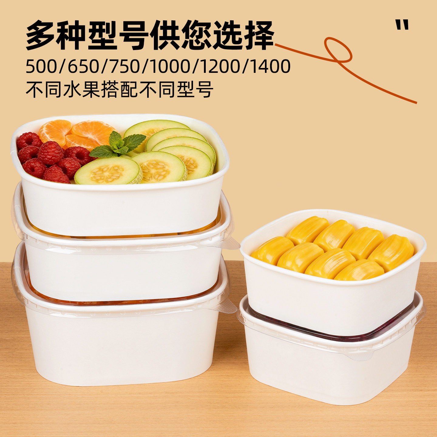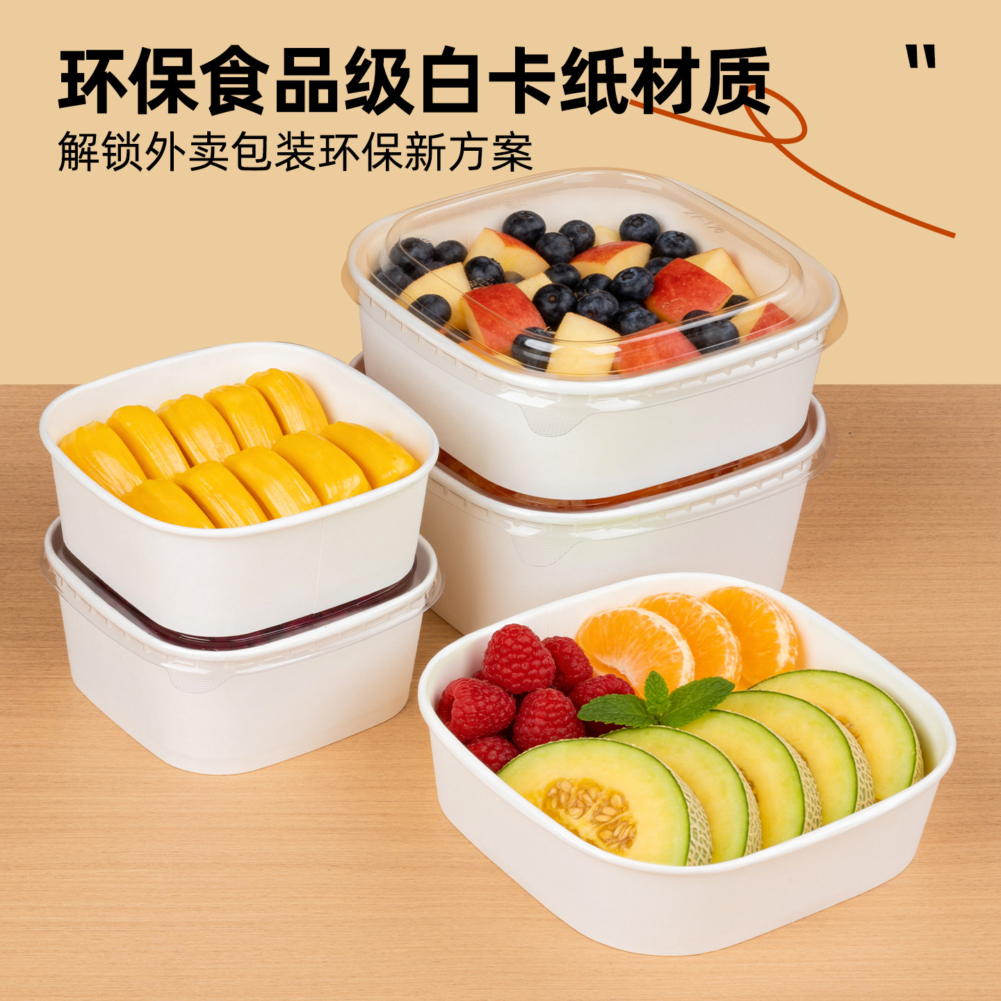 📚 一次性餐盒白色牛皮纸正方高端果切盒水果打包盒外卖沙拉碗便当盒