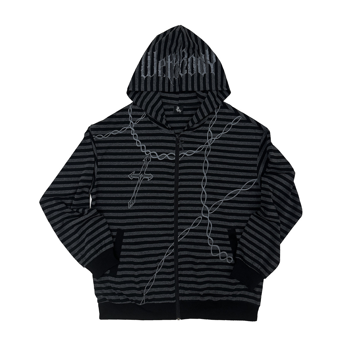 📚 湿体原创 亚文化暗黑哥特连帽宽松条纹外套刺青印花上衣男女