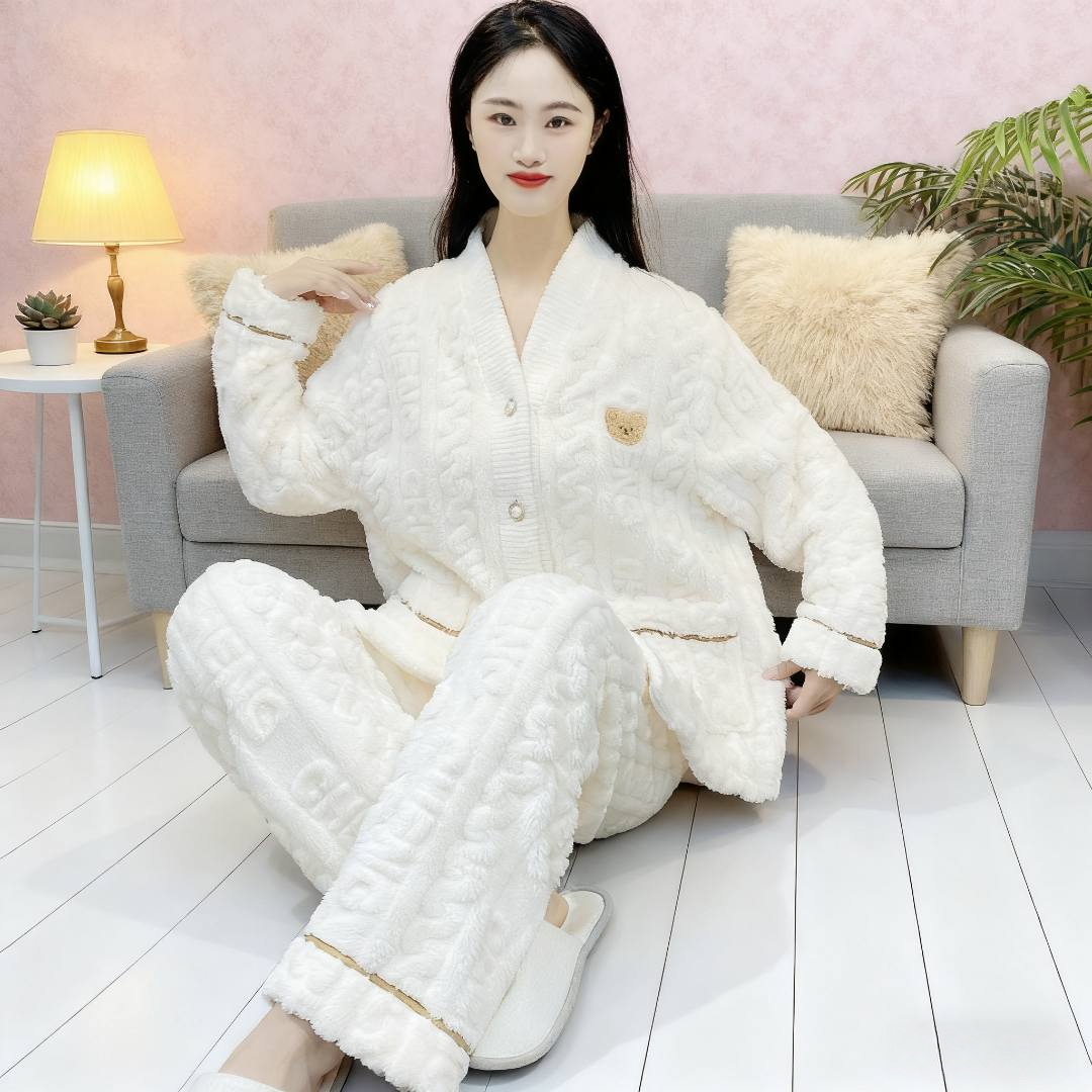 📚 睡衣女冬季加绒加厚珊瑚绒大码法兰绒2025新款女士长袖家居服套装