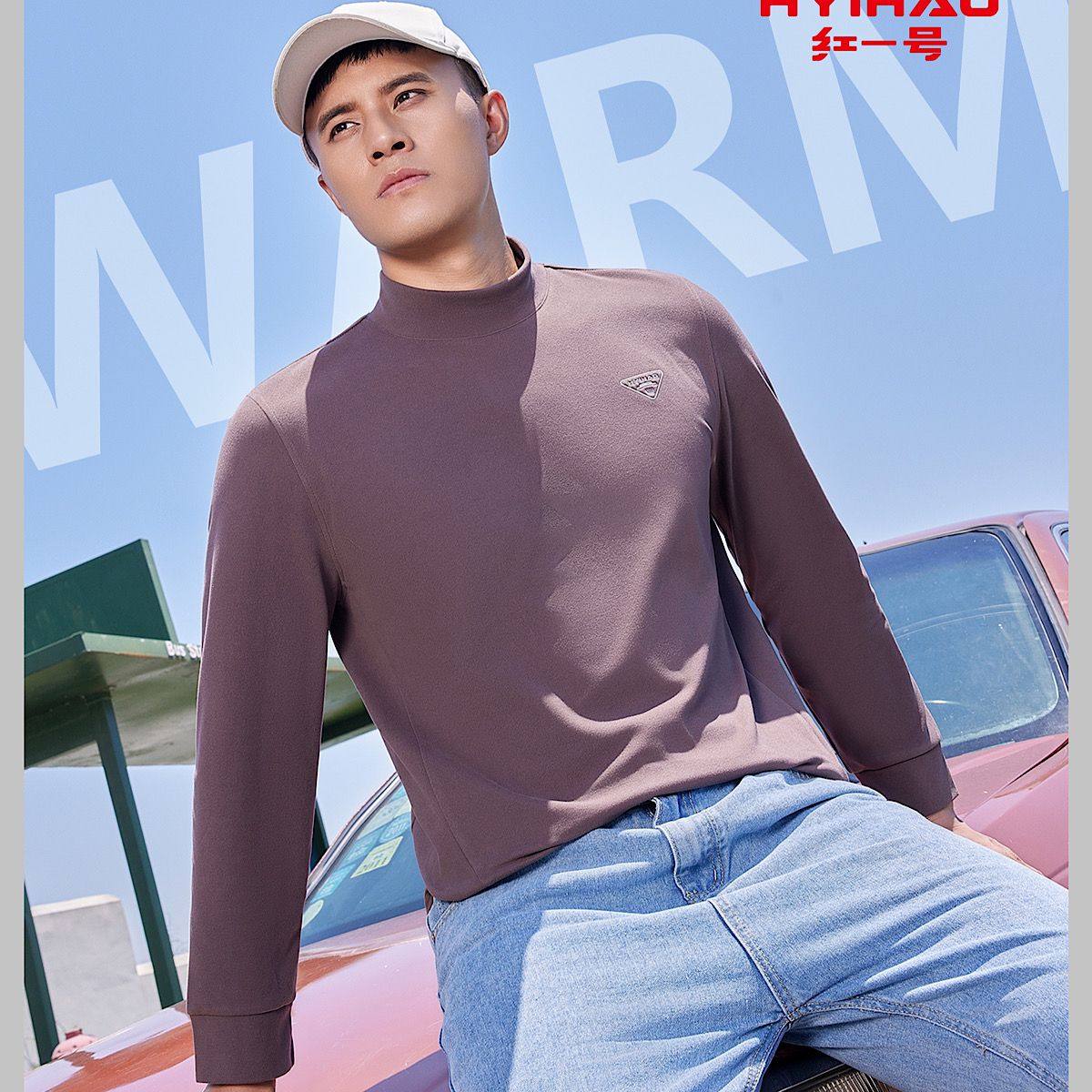 📚 红一号暖超人中领打底衫男装24秋冬新款休闲长袖德绒套头衫22188