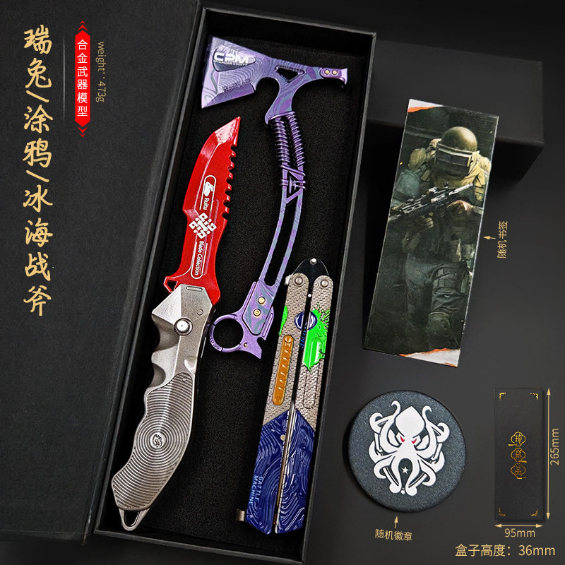 📚 暗区突围游戏瑞兔折刃可折叠之刃礼盒合金属摆件模型刀剑玩具