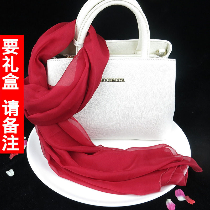 📚 酒红色丝巾100%桑蚕丝女送妈妈款纱巾丝春秋桑蚕丝围巾旗袍披肩