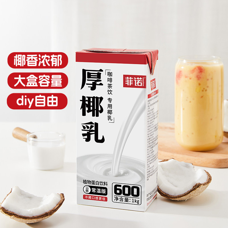 📚 菲诺厚椰乳咖啡专用椰奶0糖椰浆商用家用耶乳燕麦奶生椰拿铁椰汁