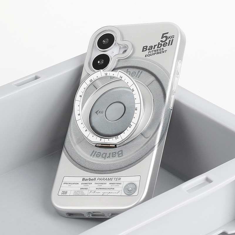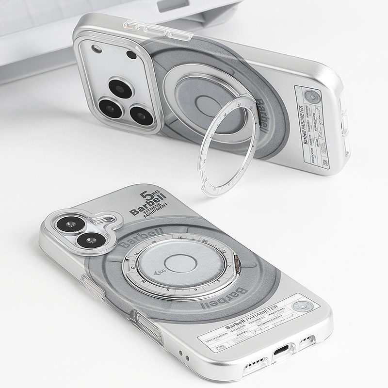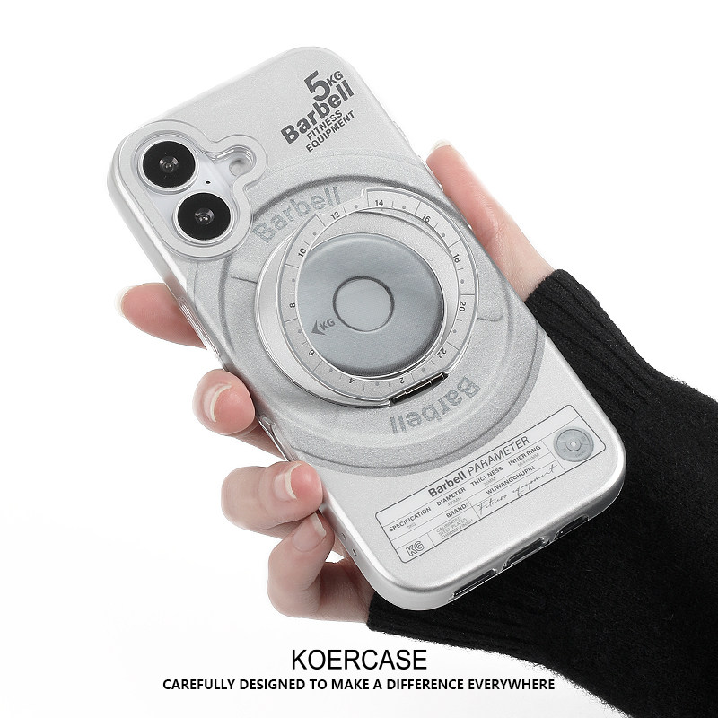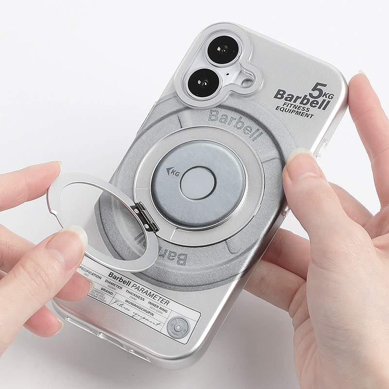 📚 barbell标签健身房哑铃杠铃片磁吸拉环支架全包手机壳磨砂银色小众创意适用苹果14iPhone16ProMax15pro17Air