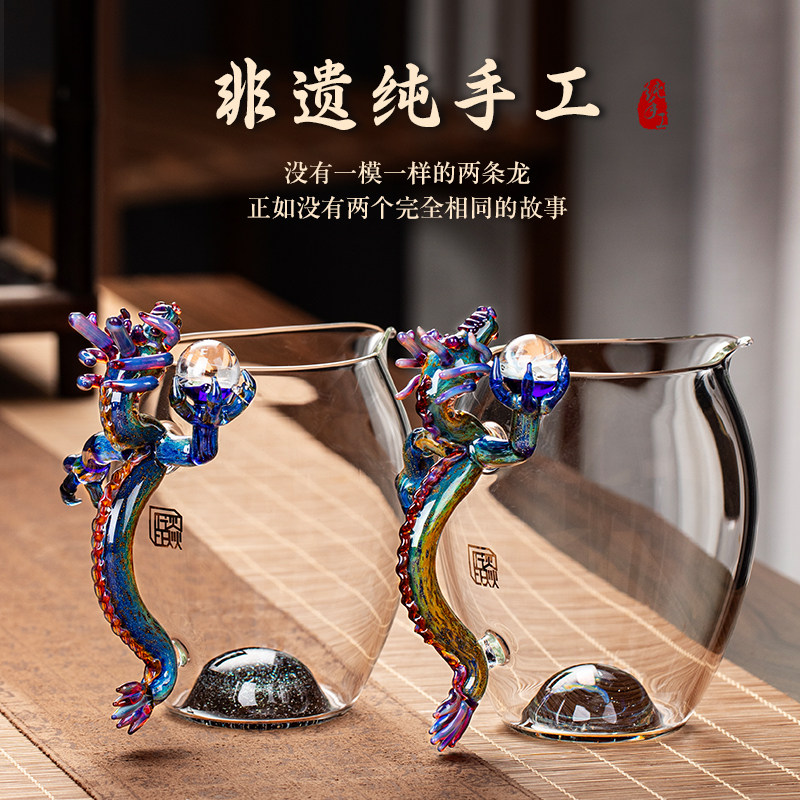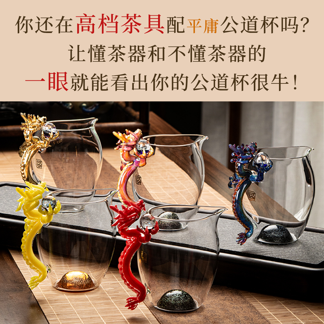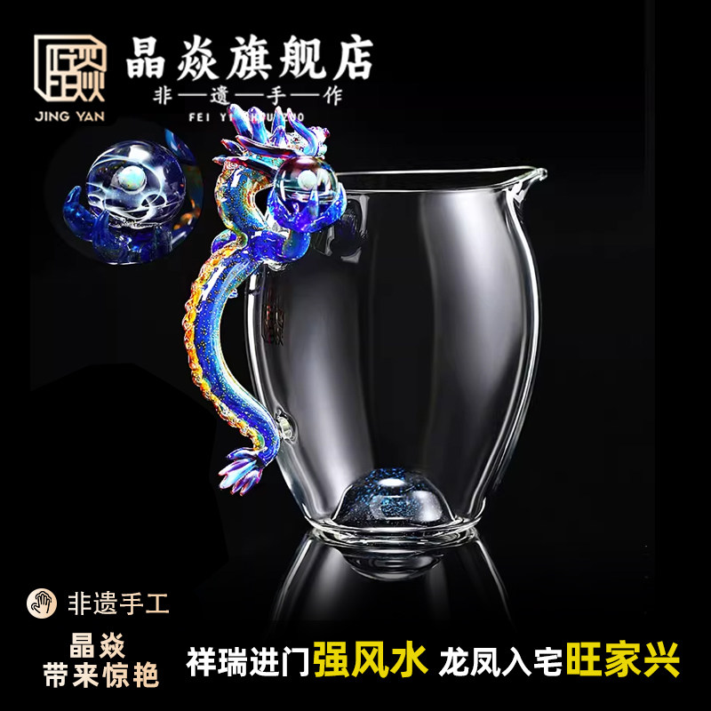 📚 晶焱三代青龙公道杯龙把手分茶器玻璃茶具高端非遗手工中秋礼品
