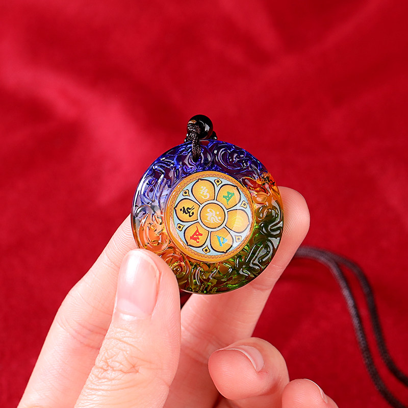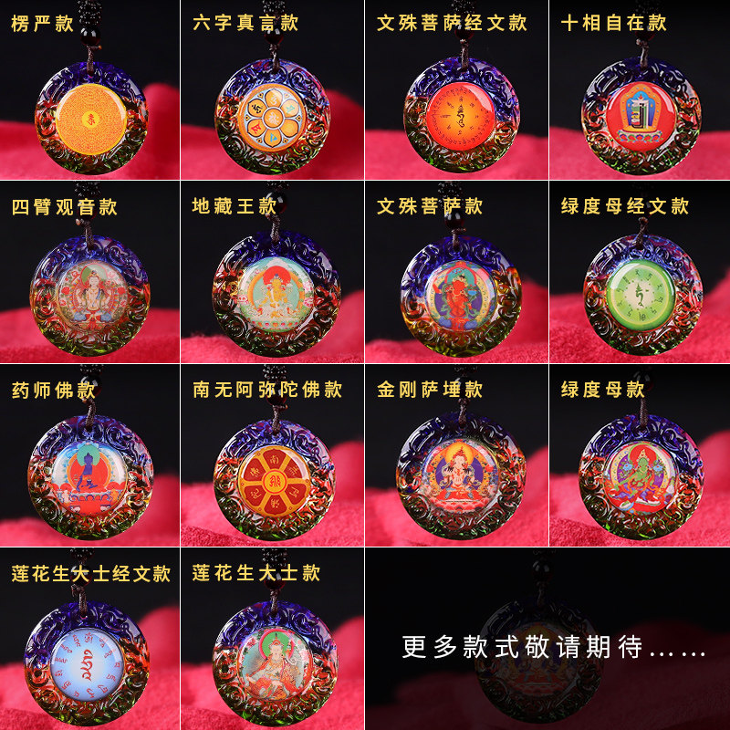 📚 惠尔美七彩琉璃楞严咒吊坠男女观音绿度母文殊药师佛六字真言项链