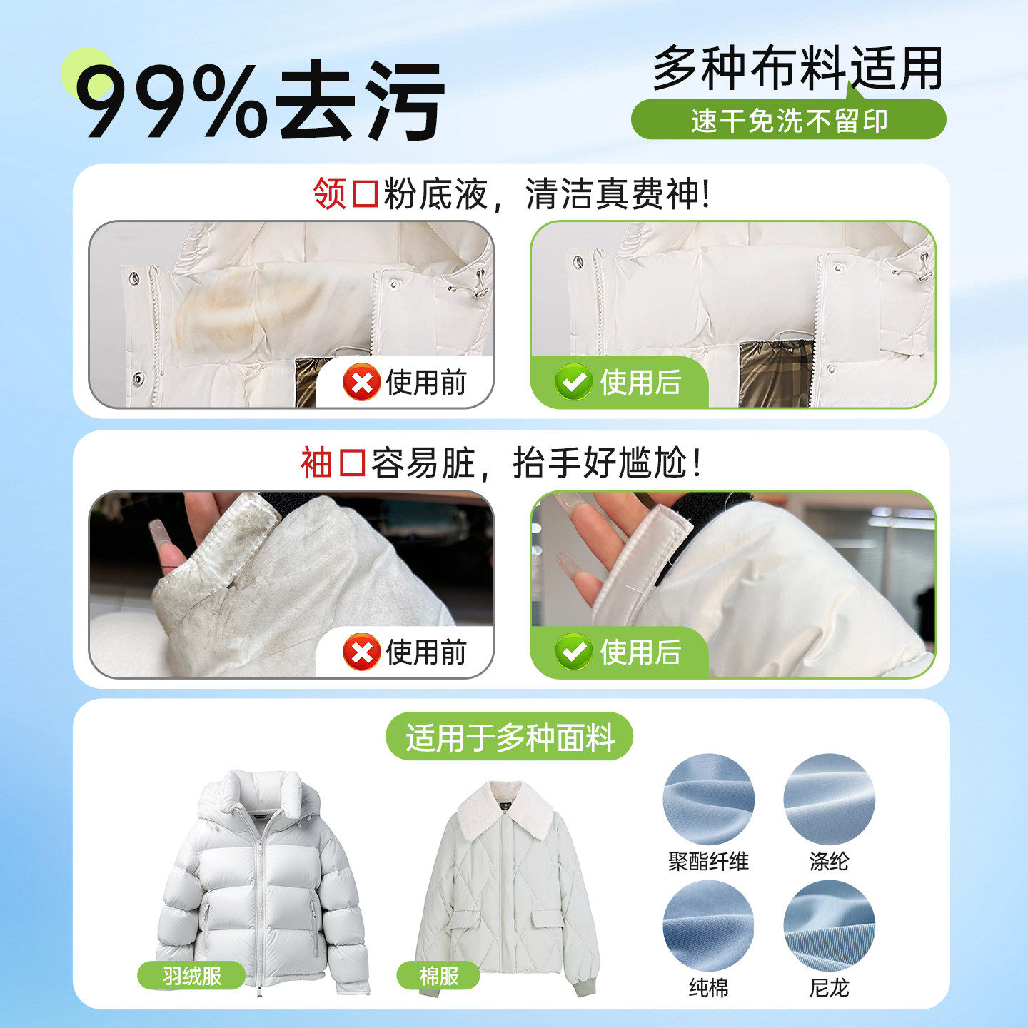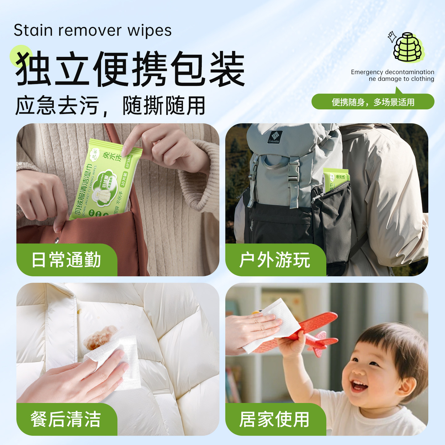 📚 兰家羽绒服清洁湿巾免洗去污强力清洁衣服湿纸巾家用干洗污渍专用