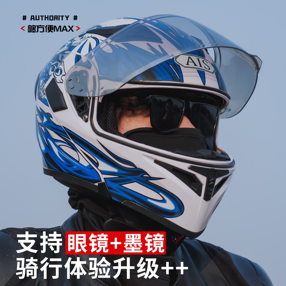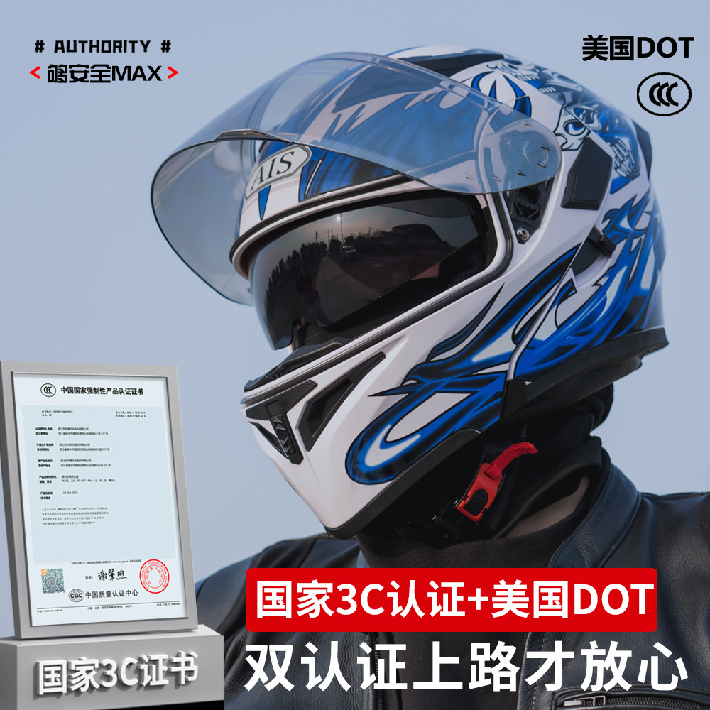 📚 艾狮摩托车头盔男女机车全盔揭面盔蓝牙双镜冬季骑行3C认证安全帽