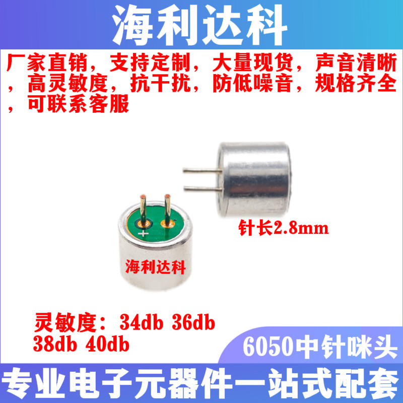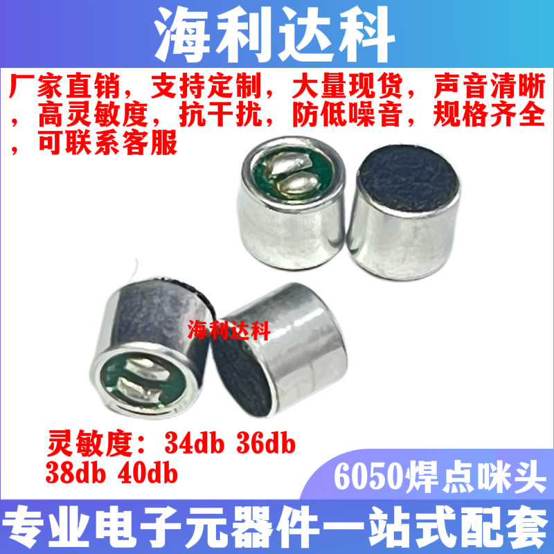 📚 6050焊点/6050P带针/6050中针咪头高灵敏度麦克风全指向6*5MM声控