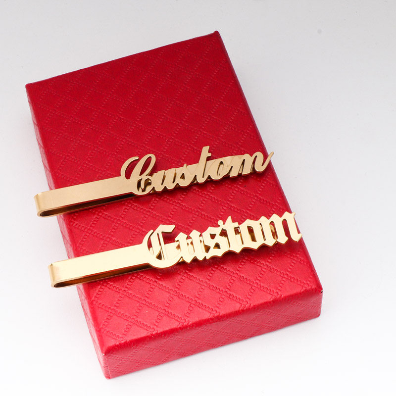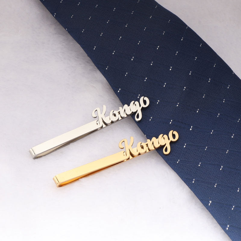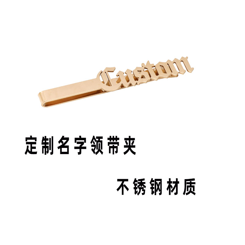 📚 定制不锈钢名字字母LOGO领带夹男士商务正装一体名字领带别针领针