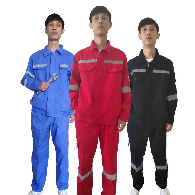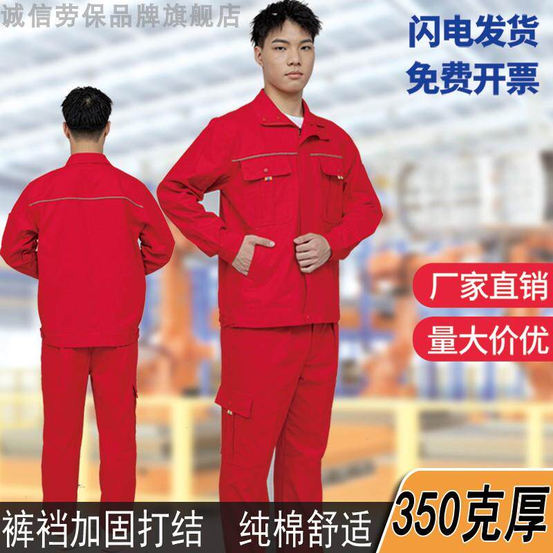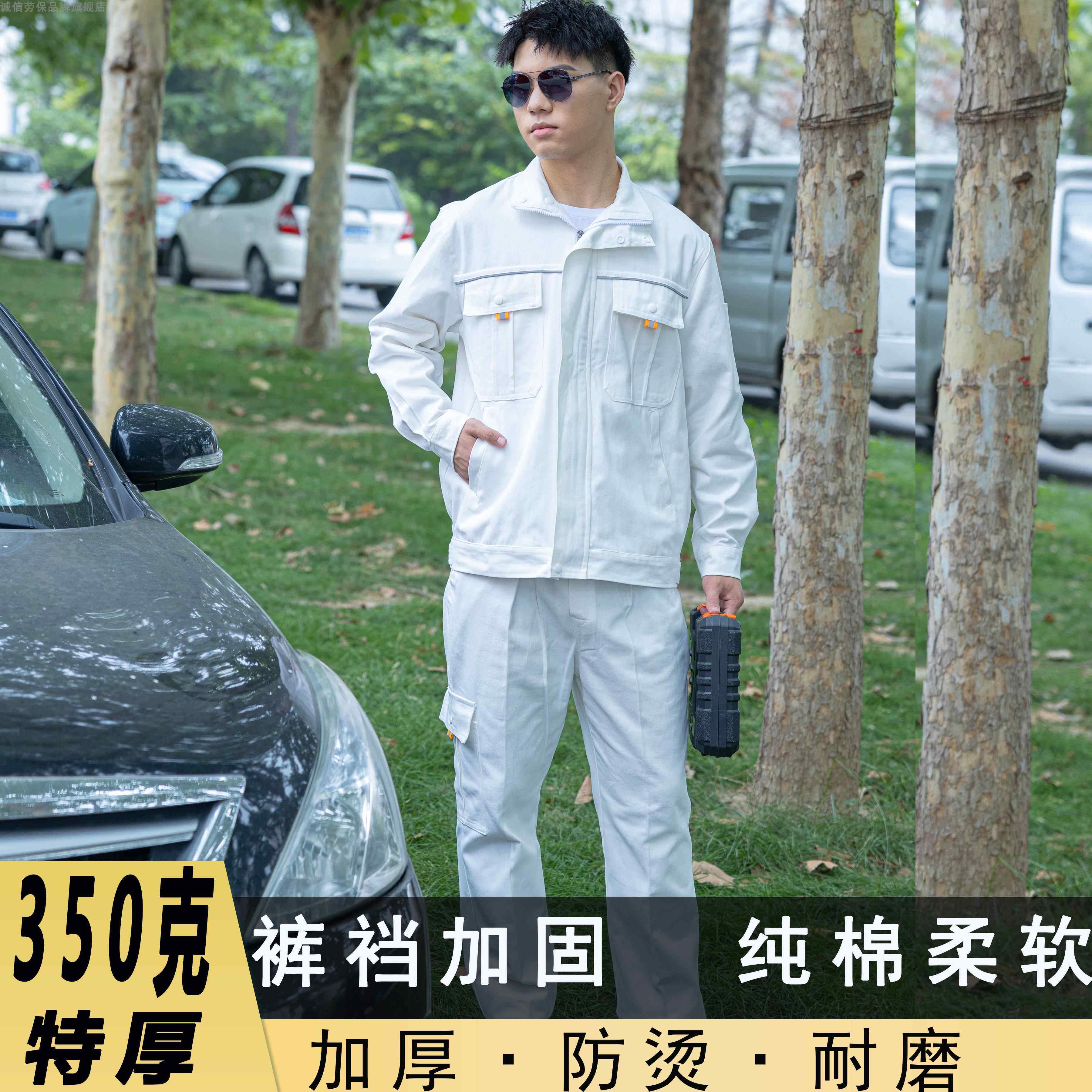 📚 工作服定制夏季纯棉电焊焊工套装男红色男装男士白色中海油劳保服