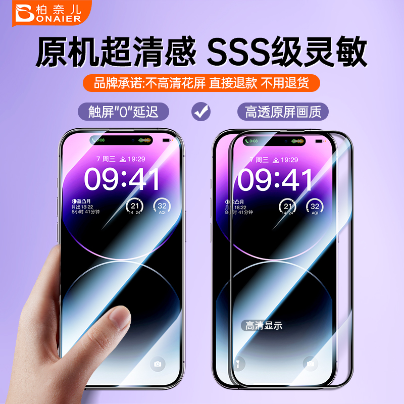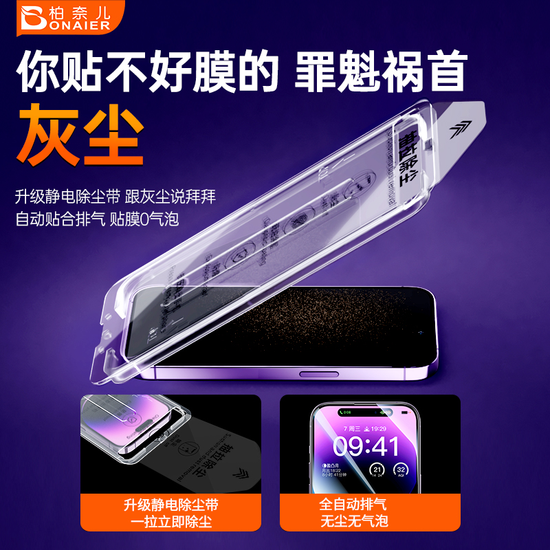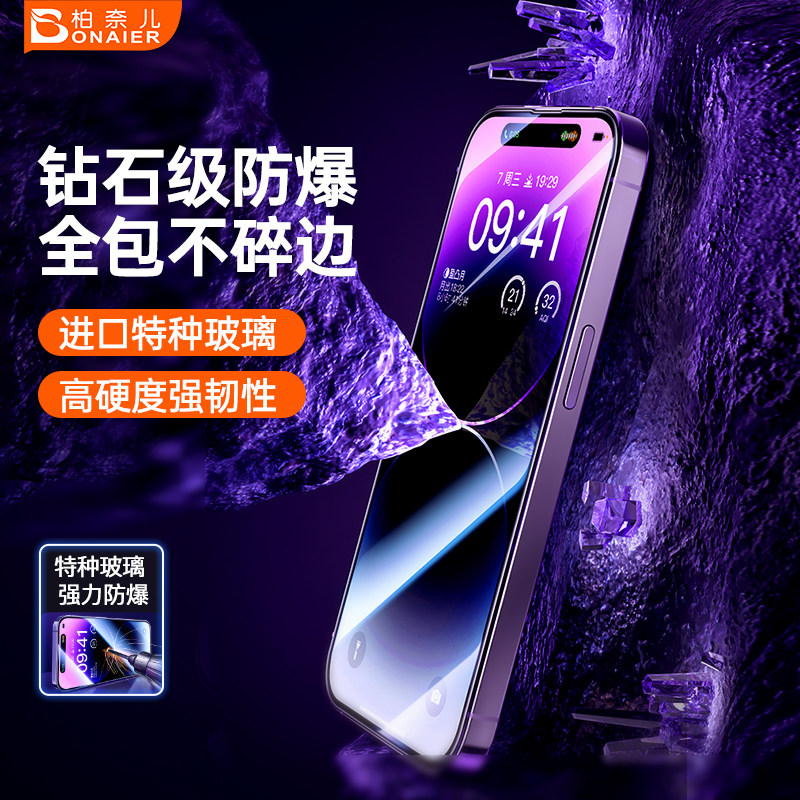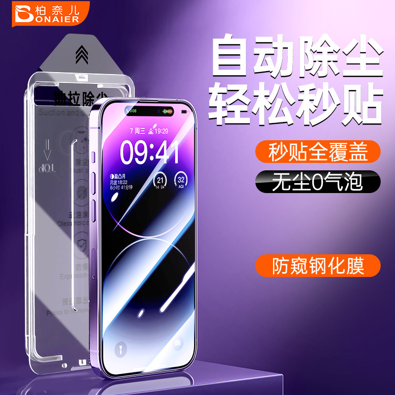 📚 柏奈儿适用苹果15钢化膜防窥手机膜iphone15pro防摔13promax全屏覆盖听筒防尘14plus新款无尘仓苹果12速贴膜