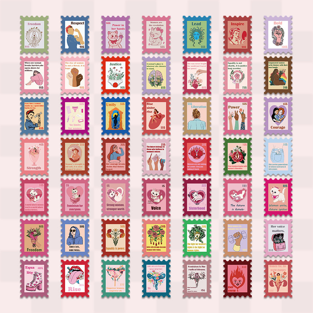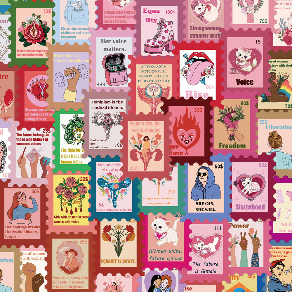 📚 100张女性主义邮票贴纸趣味ins风儿童装饰手账桌面手机壳笔记本