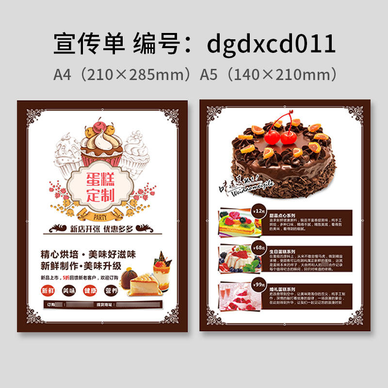 📚 蛋糕店宣传单印制面包甜品烘焙开业活动免费设计创意海报贴纸广告打印制作dm彩页双面印刷定制订做彩印优惠券
