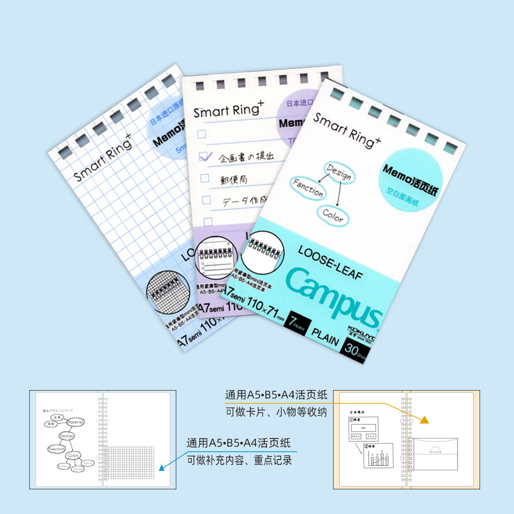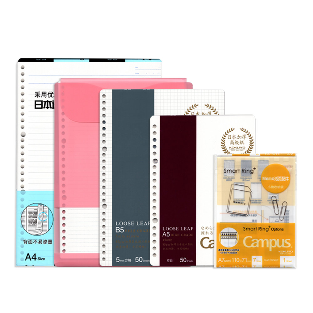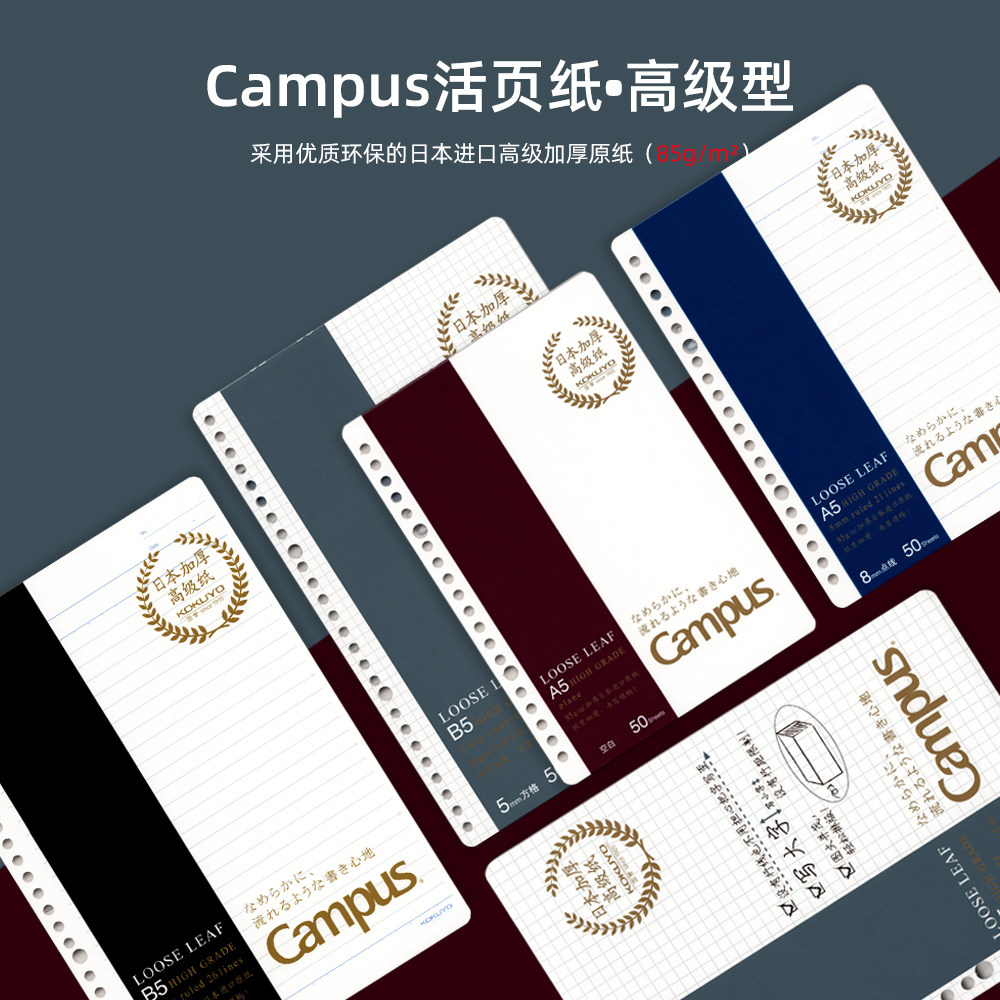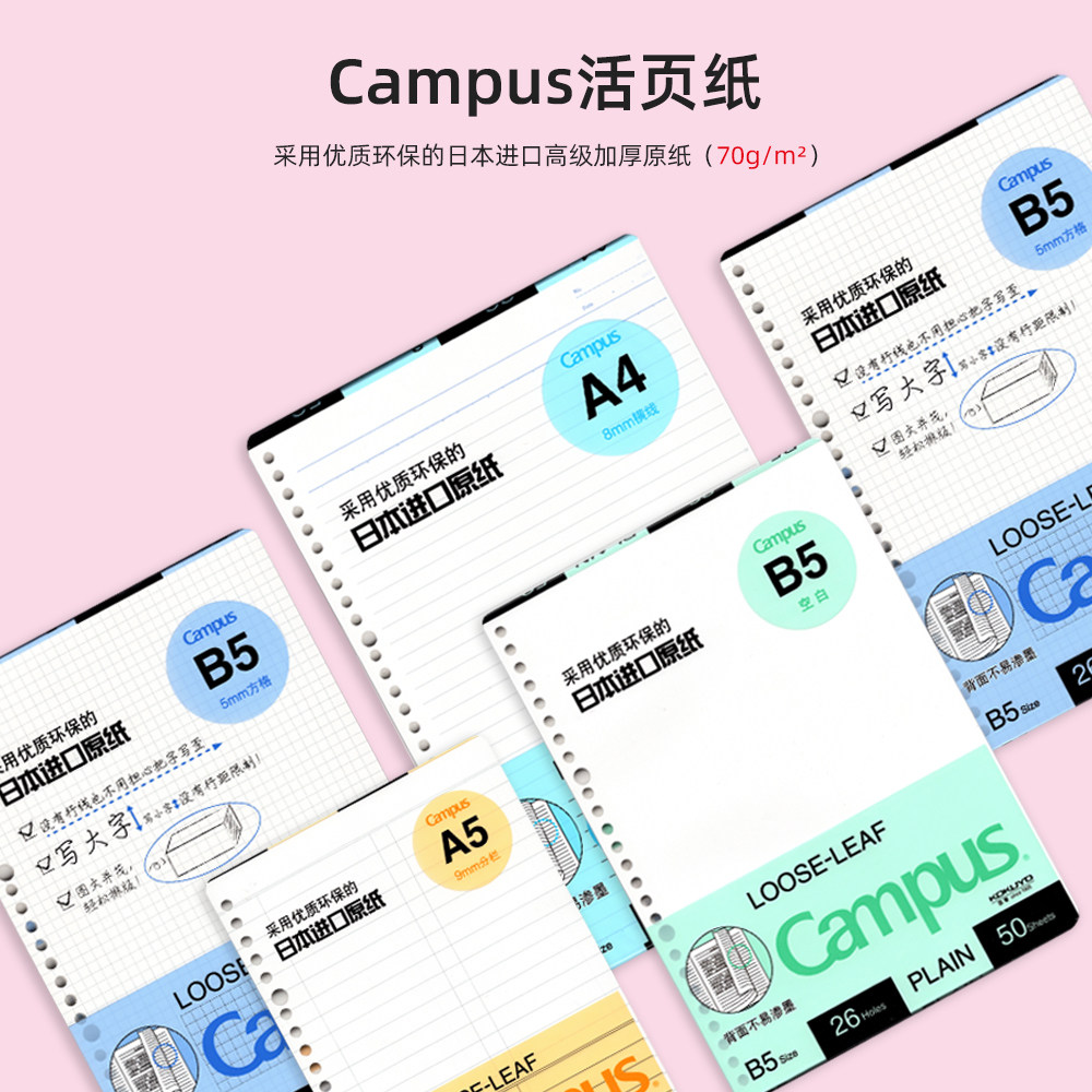 📚 kokuyo国誉campus活页本替芯A5/B5/A4横线空白点阵方格英文分栏备注学生可拆卸活页纸20孔/26孔/30孔本芯