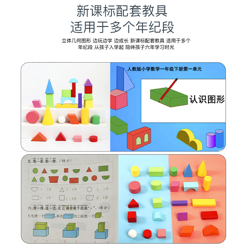 📚 小学数学教具圆柱体圆锥长方体立体几何形状认知积木早教木制玩具