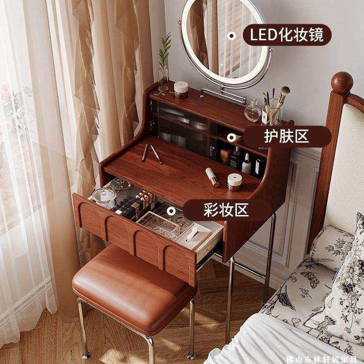 📚 法式梳妆台恒沃中古复古风小户型实木卧室床头化妆设计师化妆台
