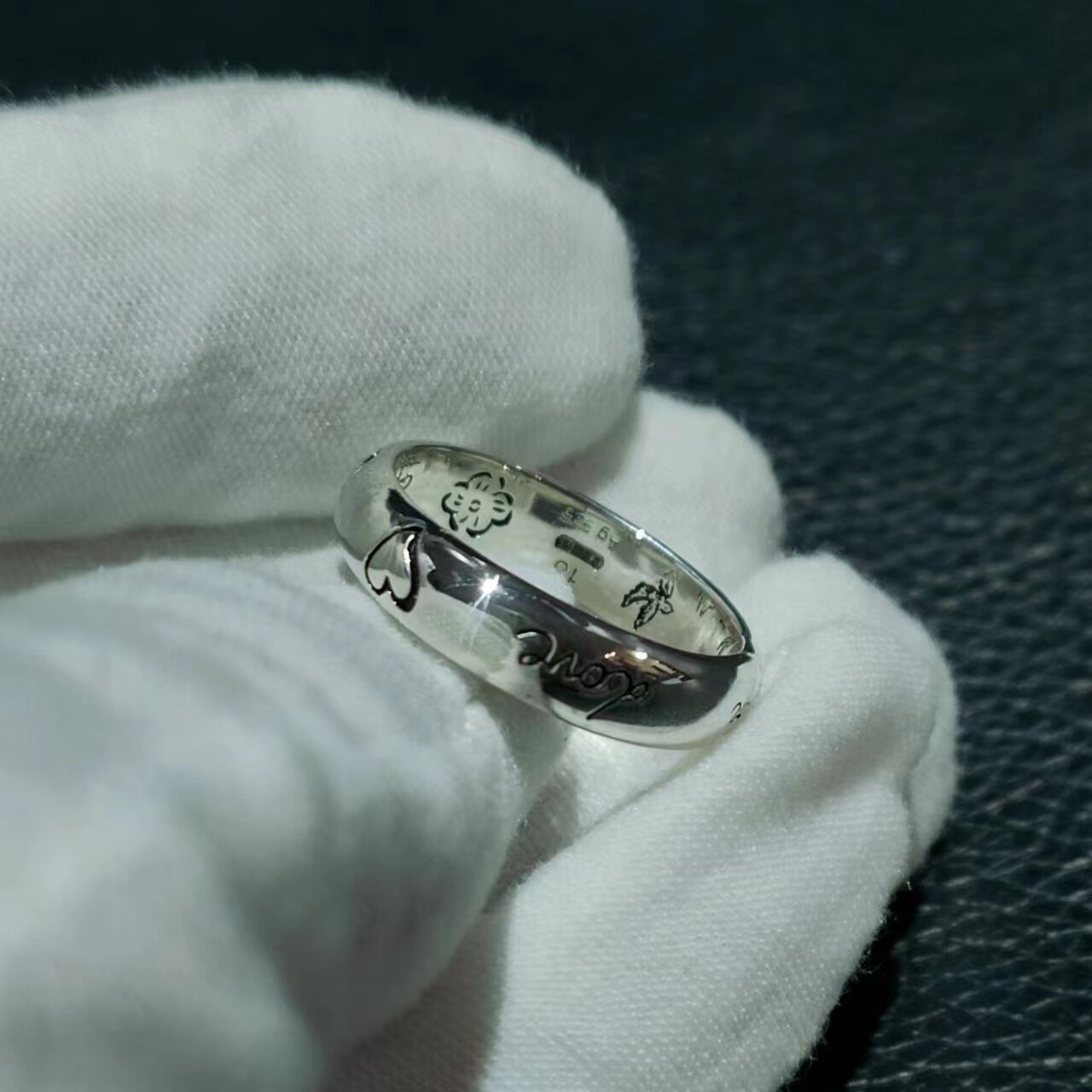 📚 925纯银BLIND FOR FK LOVE无畏爱窄5MM爱心花鸟时尚情侣戒指