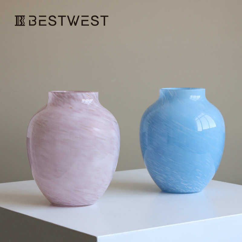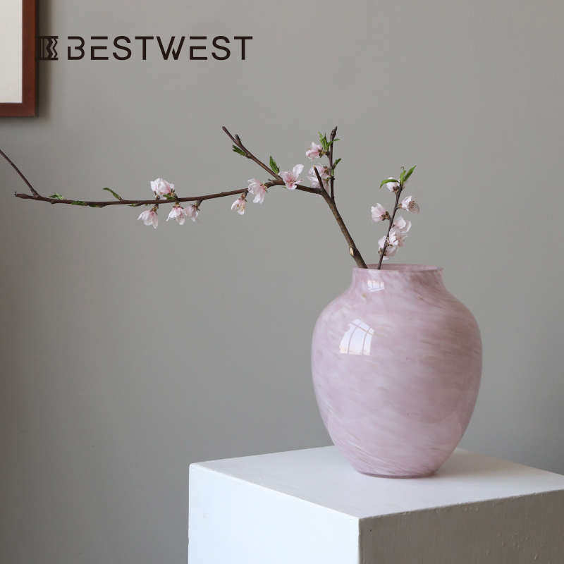 📚 高档特别中古浅奢瓶的插花花瓶好看轻水培粉摆件bestwest客厅玻璃