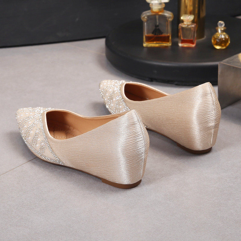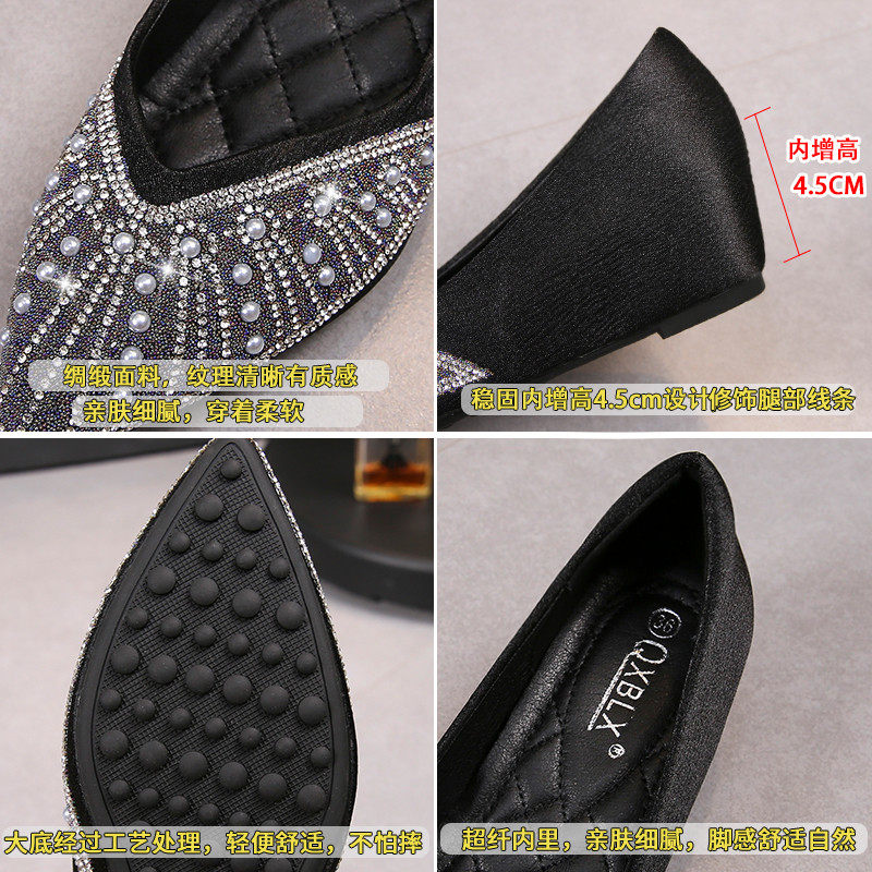 📚 小码女鞋32f 33单鞋2023春季新款百搭水钻瓢鞋坡跟内增高豆豆鞋女