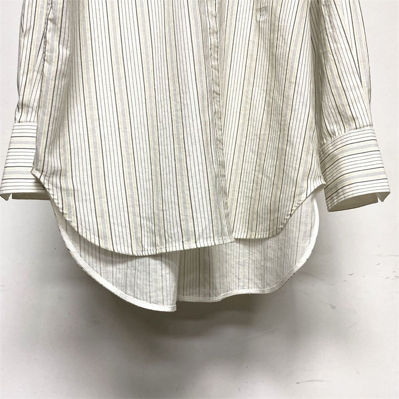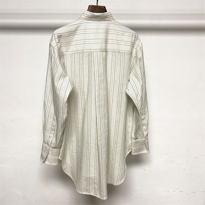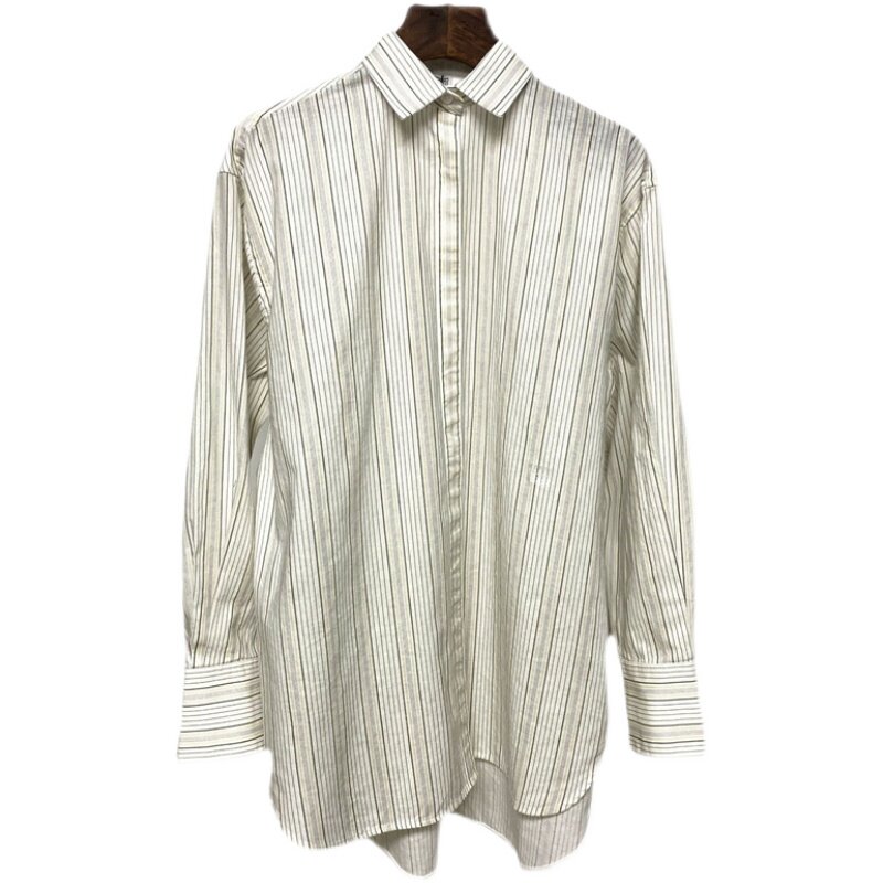 📚 2022春夏新款北欧tot棉混纺竖条纹廓形宽松版衬衫衬衣女长袖百搭