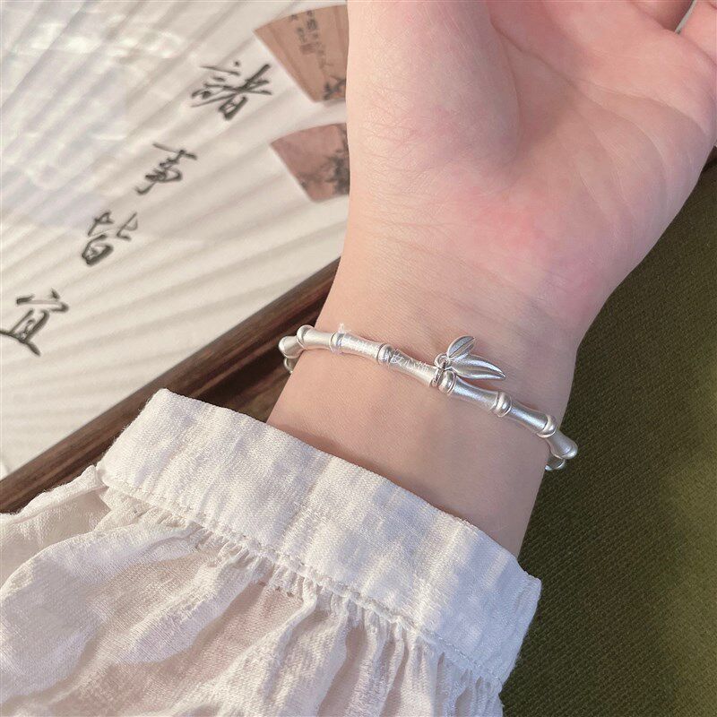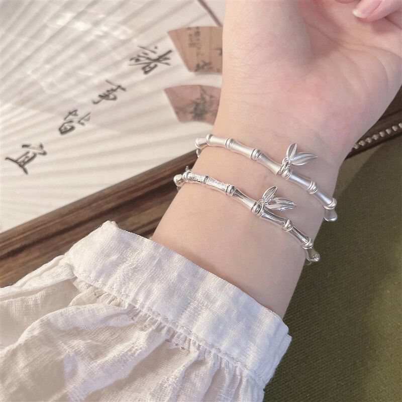 📚 竹下风致大饼的少女心饰新中式竹节手链女竹子手串镀银手镯