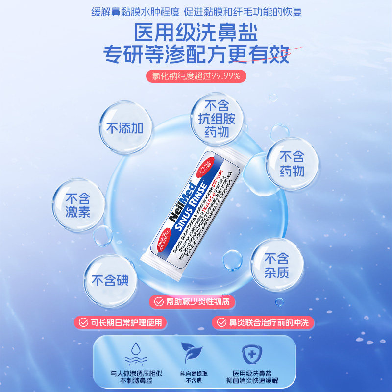 📚 【自营】美国NeilMed洗鼻盐大人专用480包过敏鼻腔冲洗洗鼻盐水