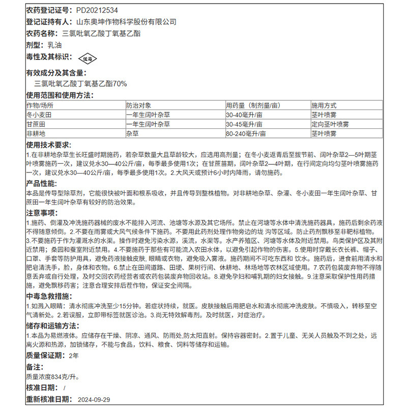 📚 红瓦帝 70%三氯吡氧乙酸丁氧基乙酯小麦田甘蔗田阔叶杂草除草剂
