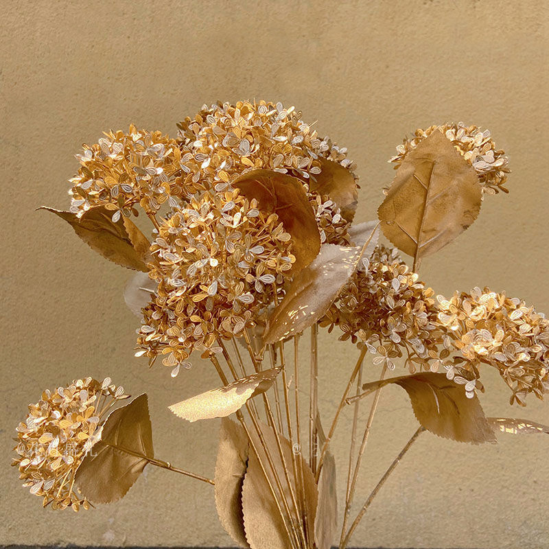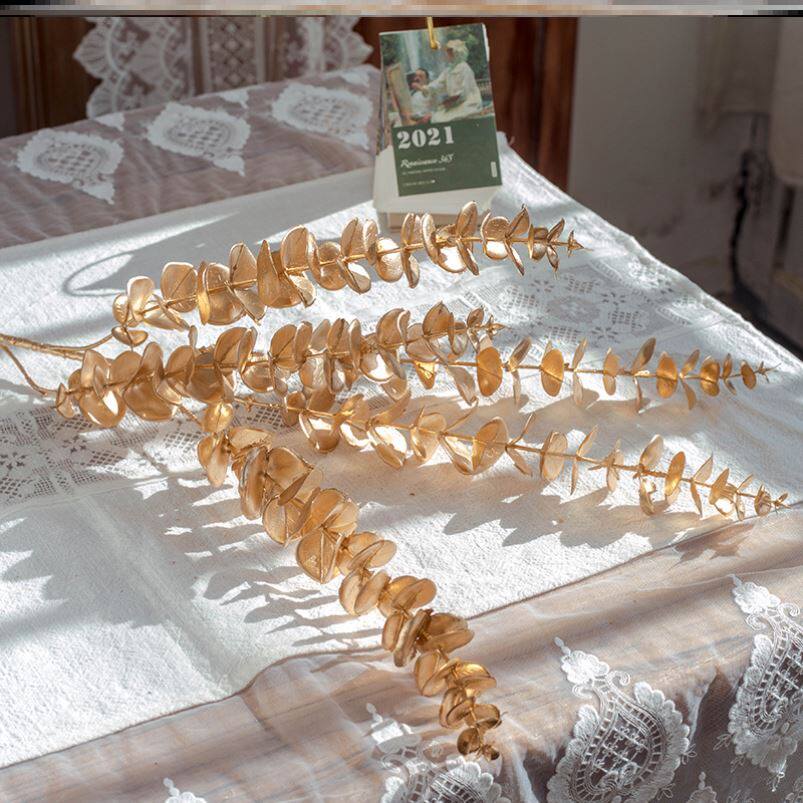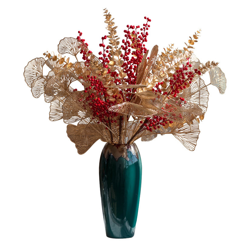 📚 爆款3叉扇叶银杏叶仿真花金色发财红果冬青乔迁新居摆件客厅装饰