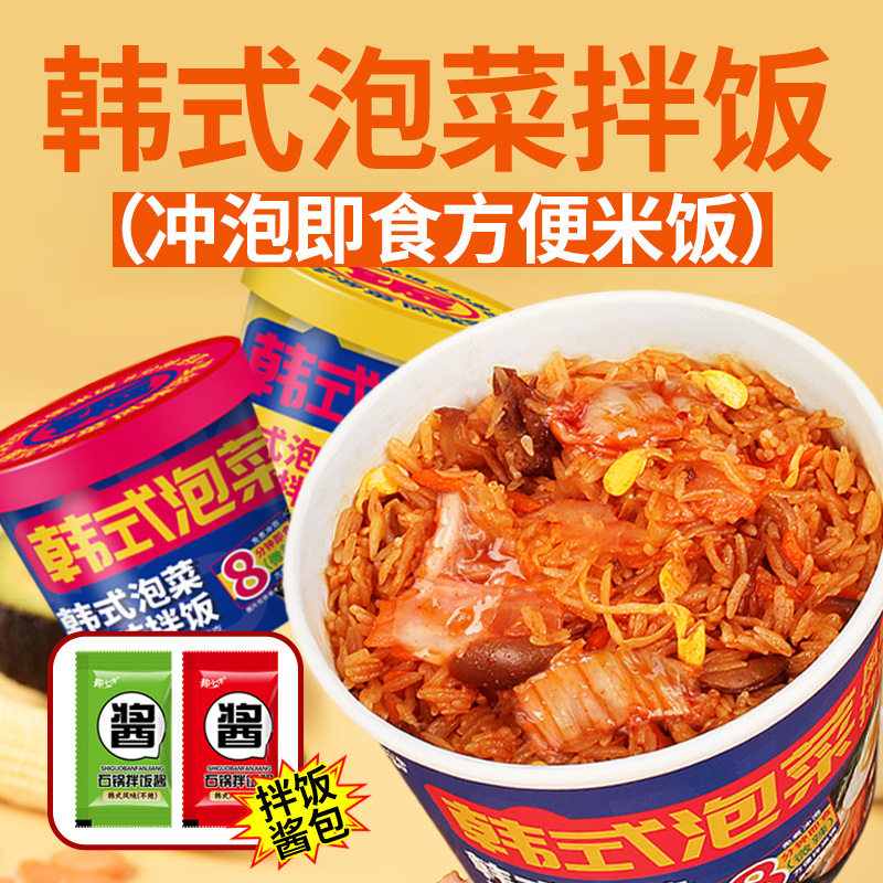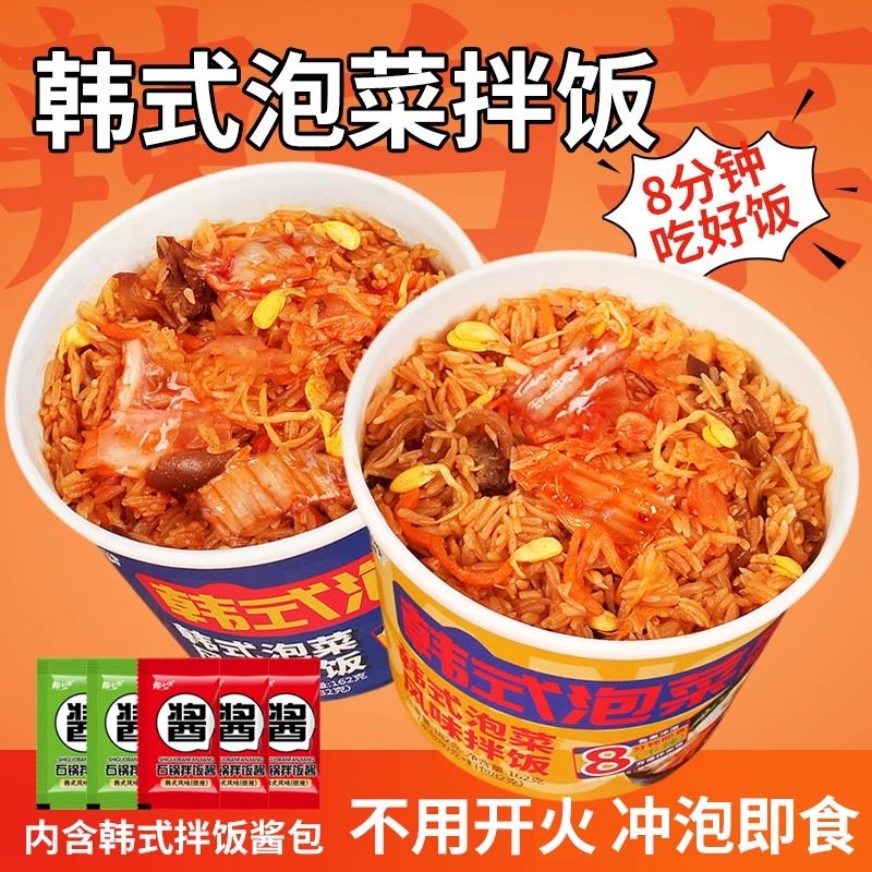 📚 大份量】韩式泡菜拌饭方便米饭免煮冲泡拌饭桶装泡饭办公加班晚餐