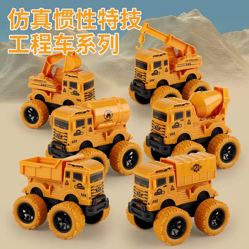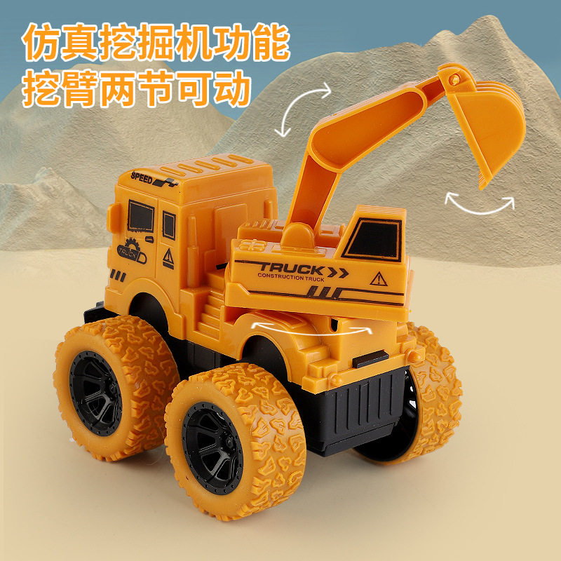 📚 儿童耐摔惯性越野翻斗挖掘机工程车回力四驱翻斗车吊机挖土机玩具