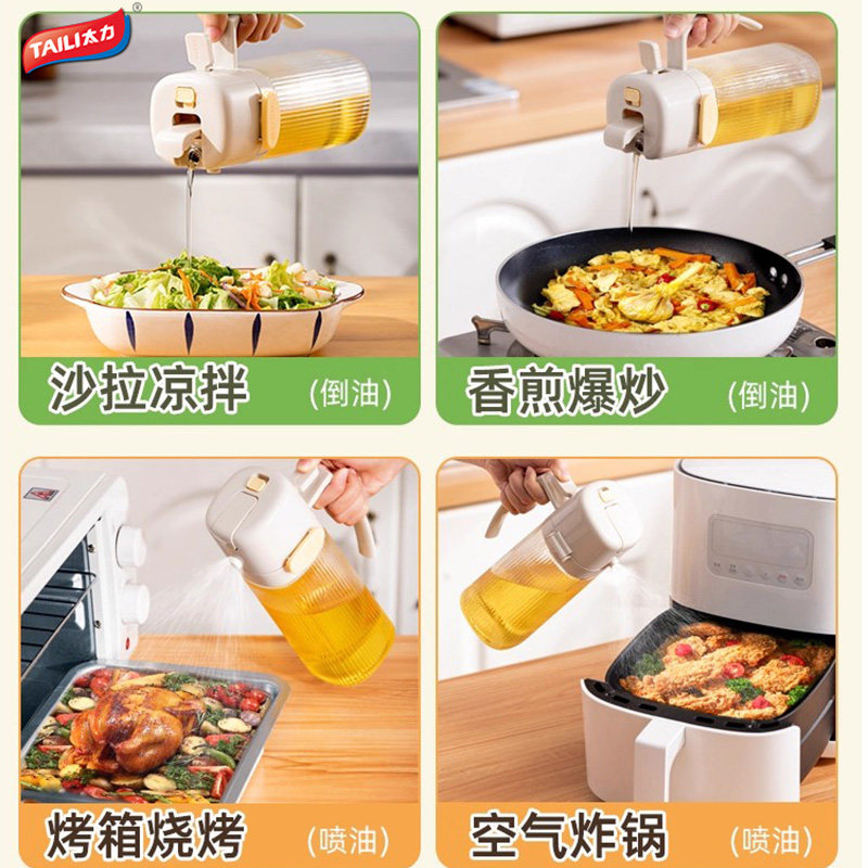 📚 太力喷倒两用油壶喷油壶不挂油油罐厨房家用玻璃油瓶酱油醋调料瓶