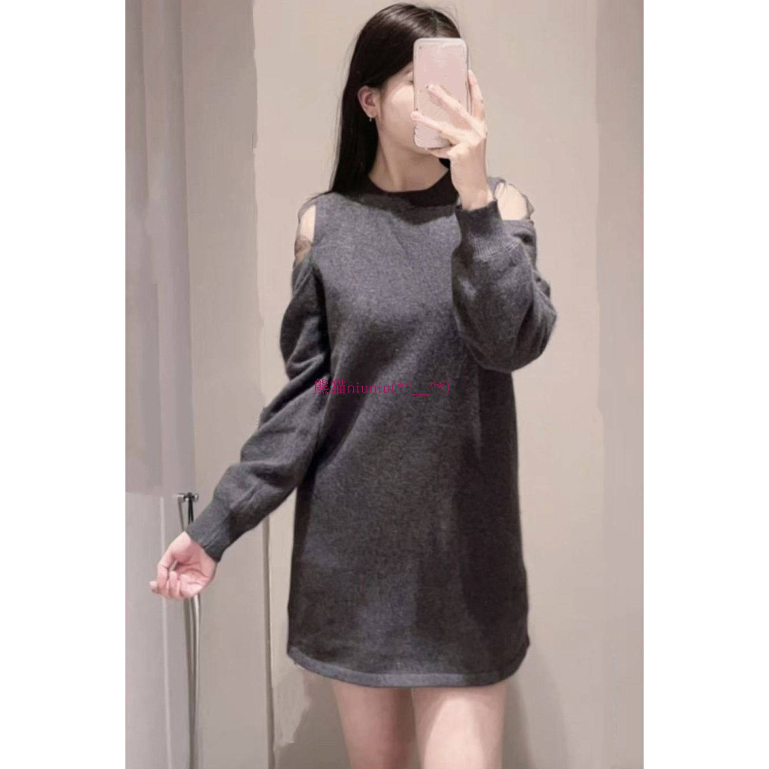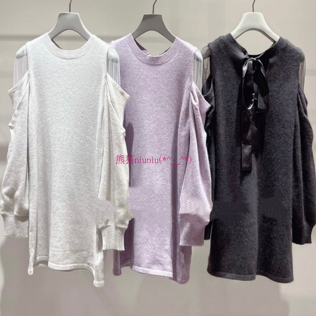 📚 25年新版型!经典款再现!纯元S家 薄纱拼接露肩后系带针织连衣裙