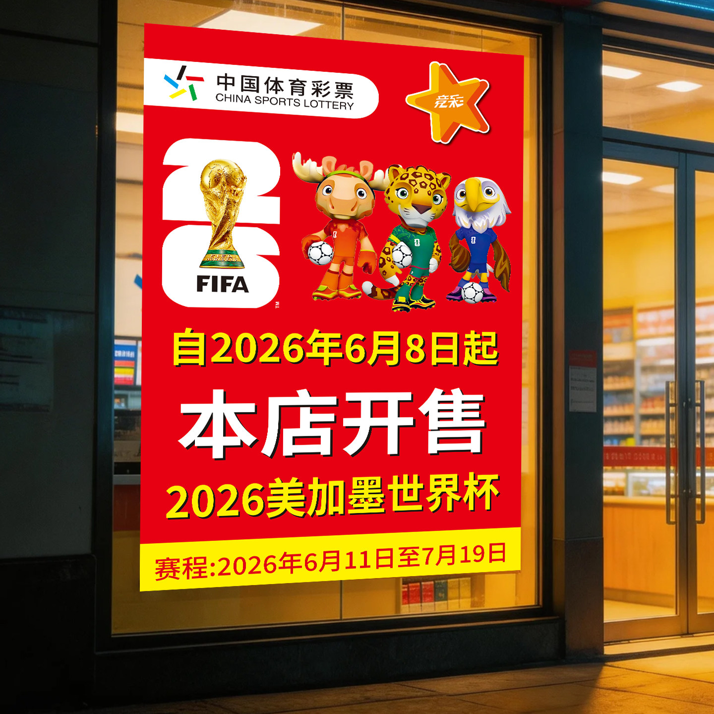📚 2026美加墨世界杯体彩店主题海报竞彩宣传物料本店开售背胶贴纸