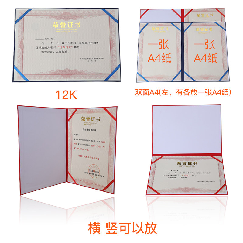 📚 宝利豪荣誉证书定制定做单页单片式a4结业毕业获奖培训证书学历奖状聘书保护套任命书外壳封皮封面制作可打印