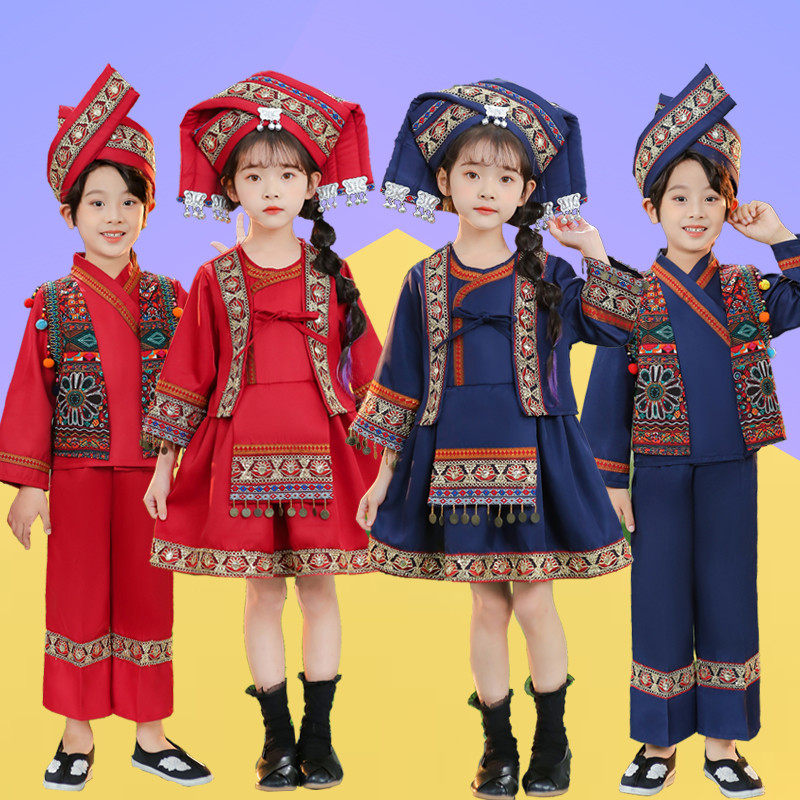 📚 3月3民族服装儿童56个民族幼儿园壮族布依族舞蹈服女少数民族服装