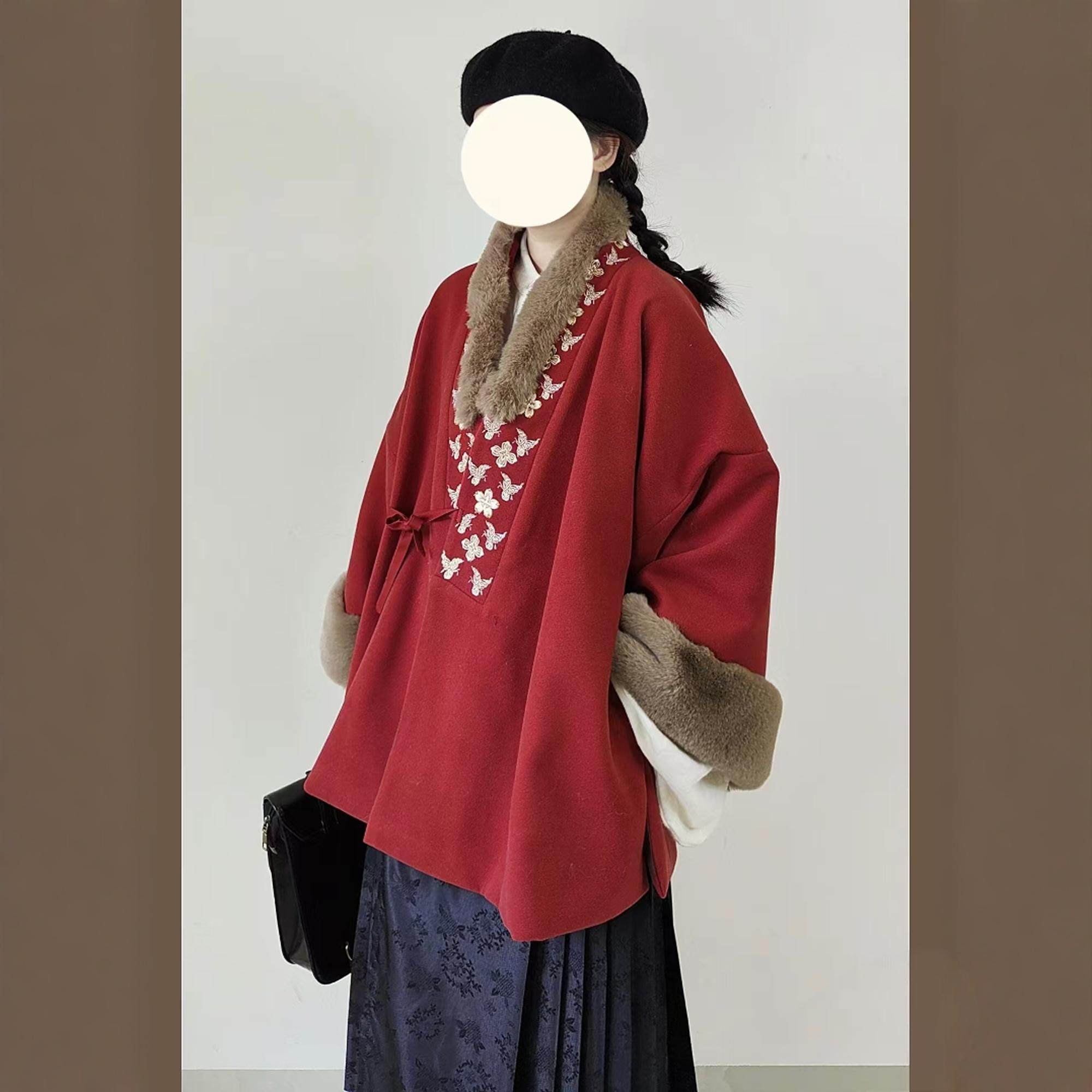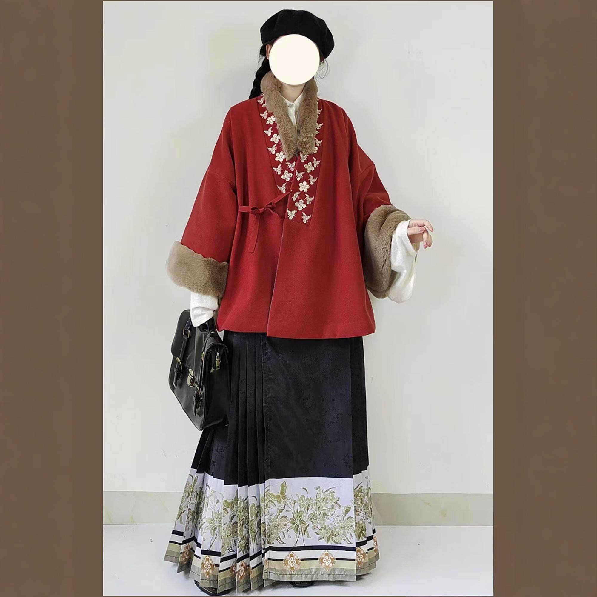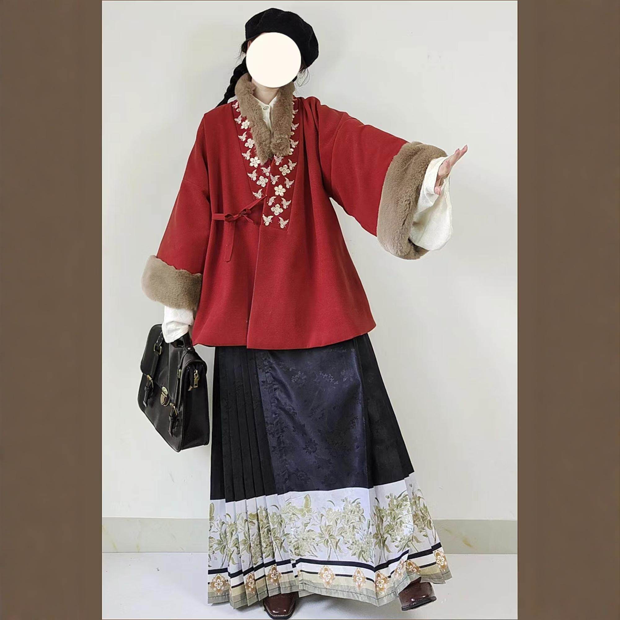 📚 原创汉服女【秋词】明制加绒直领对穿交短袄马面裙日常套装秋冬款