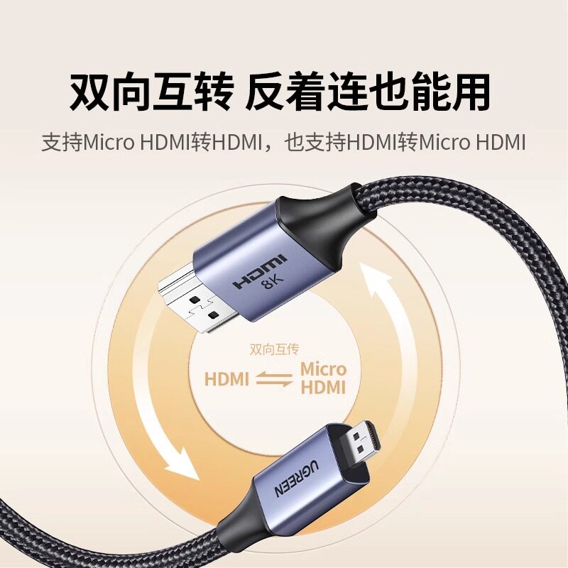 📚 绿联microhdmi转hdmi2.1线8K高清转换器连接相机采集卡适用索尼