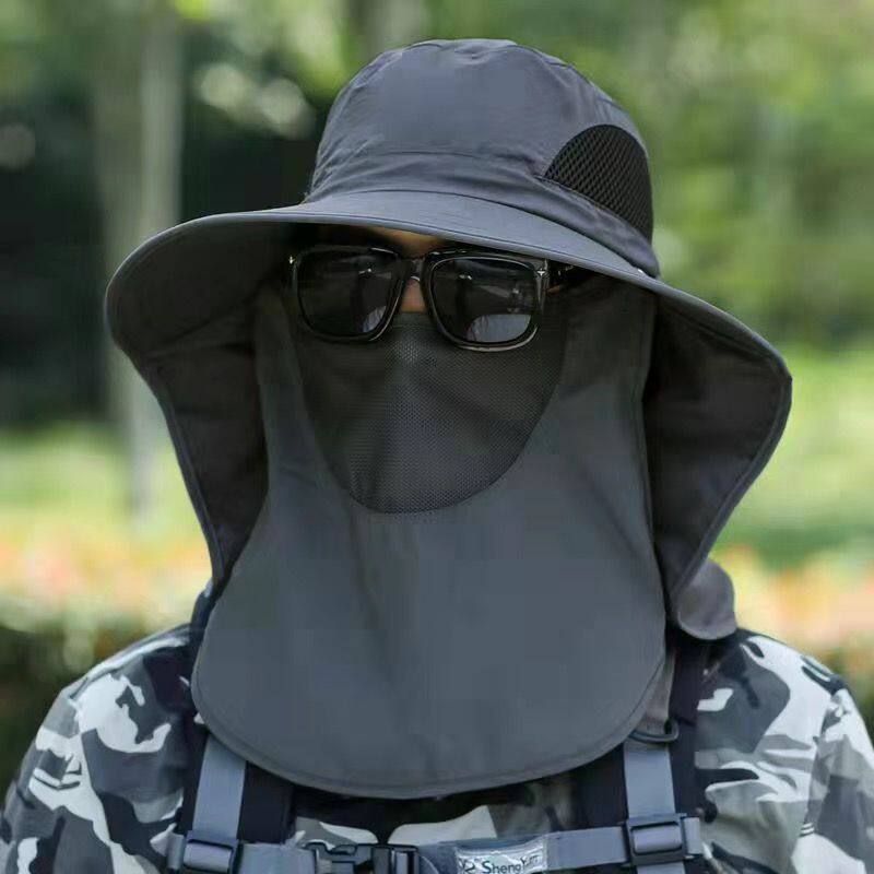 📚 防晒帽子男钓鱼帽渔夫帽户外登山太阳帽遮脸防紫外线遮阳采茶帽女