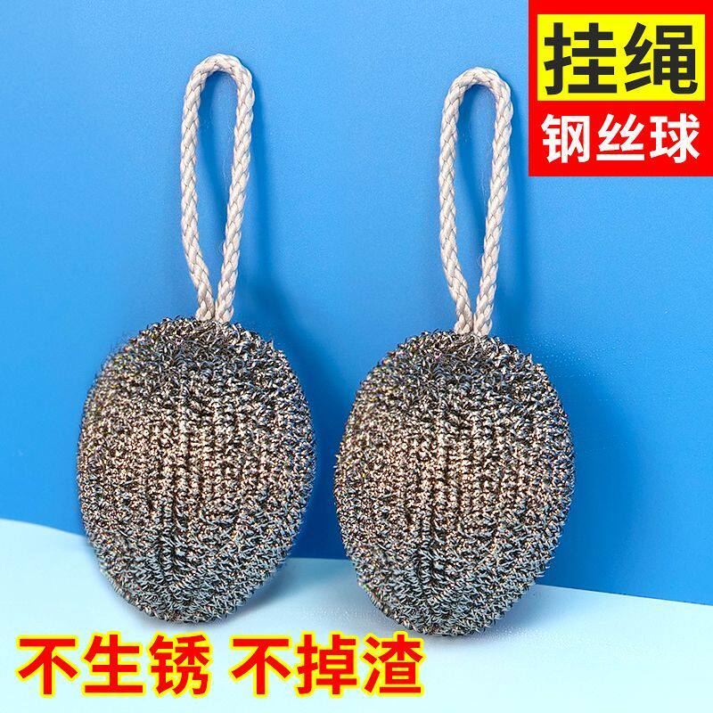 📚 大号加密钢丝球自带挂绳不锈钢清洁球厨房刷锅洗碗神器油污不掉丝