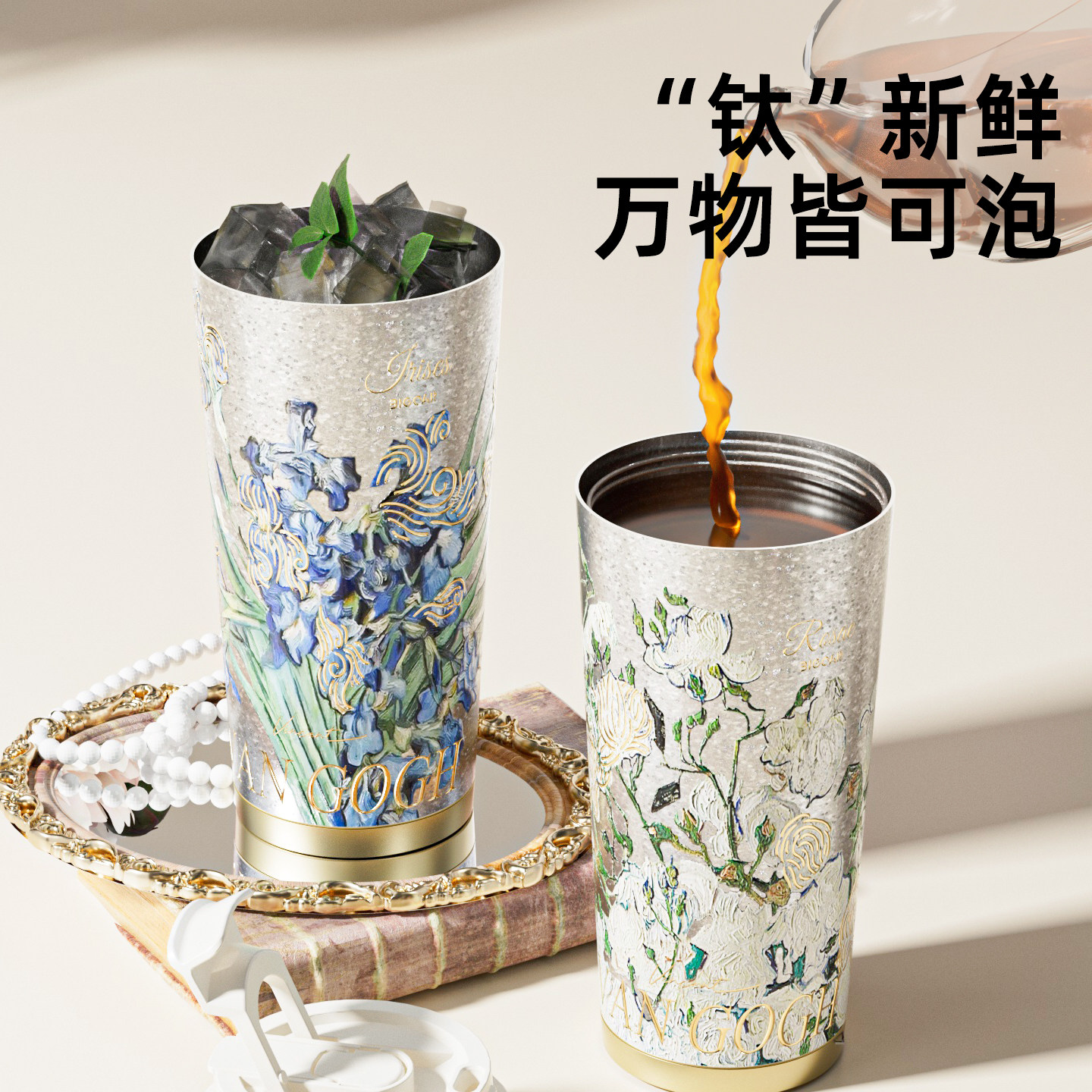 📚 bigcar梵高纯钛保温杯咖啡杯女生高颜值水杯2026新款生日礼物钛杯
