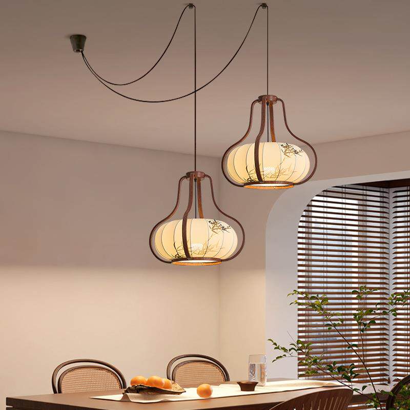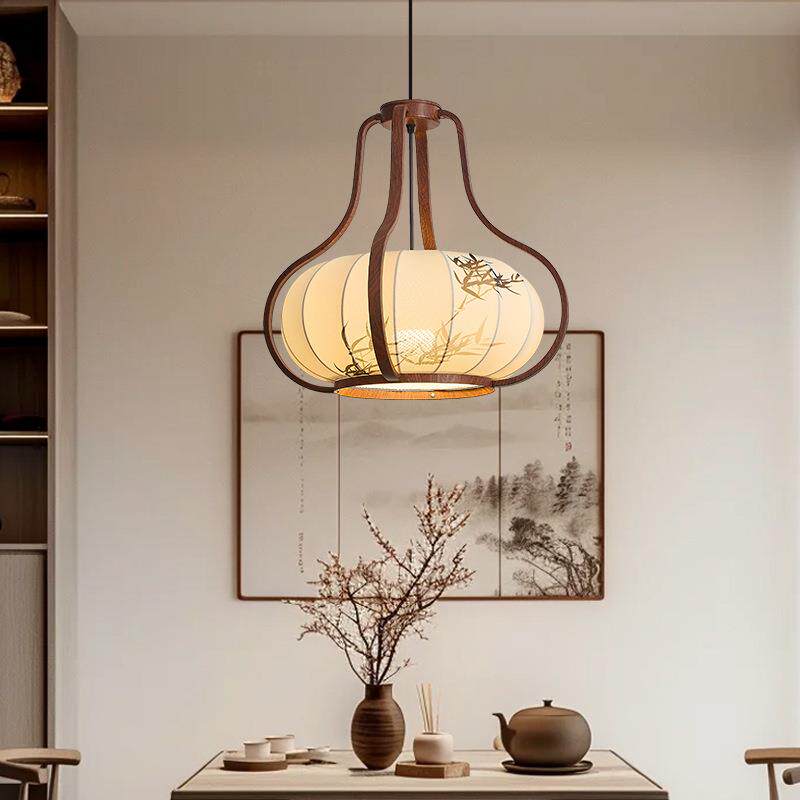 📚 餐厅吊灯新中式创意护眼床头吊灯宋式美学布艺墨竹茶室灯笼吊灯