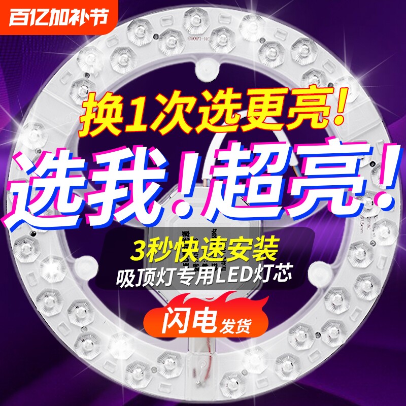 📚 吸顶灯led灯芯圆形灯板光源替换灯管灯条灯盘超亮三色灯珠节能