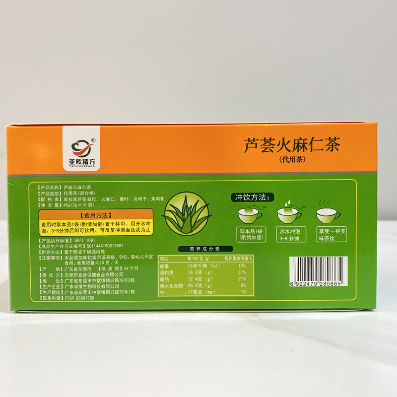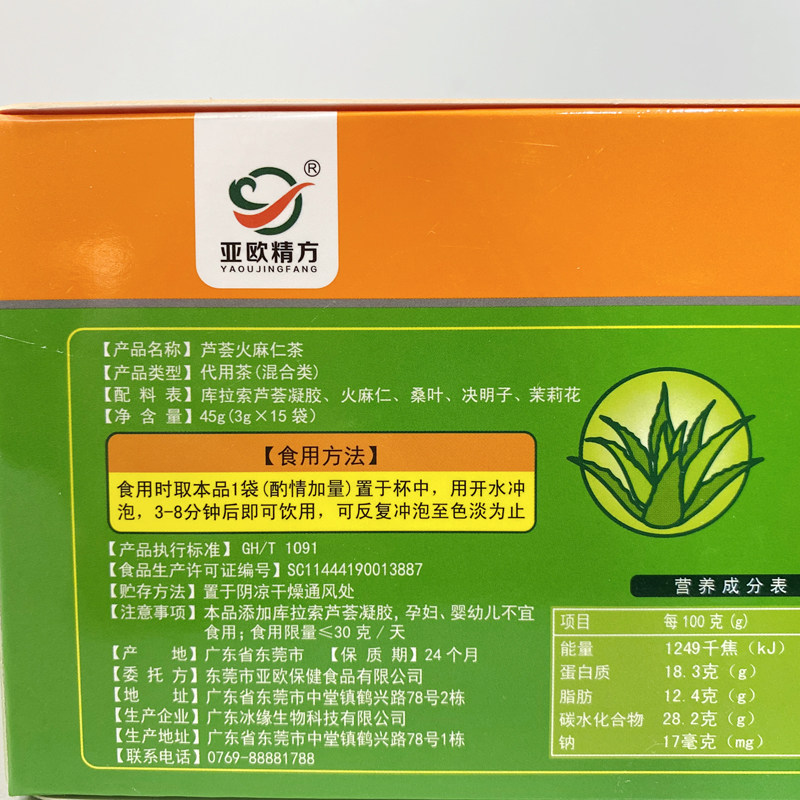 📚 买2送1,买5送3】亚欧精方芦荟火麻仁茶库拉索芦荟凝胶3g/袋*15袋