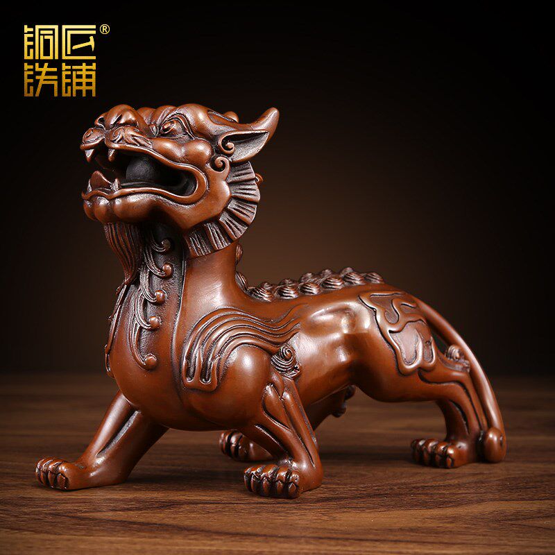 📚 紫铜双角貔貅新中式家居公司装饰品G纯铜摆设公司开业乔迁礼品