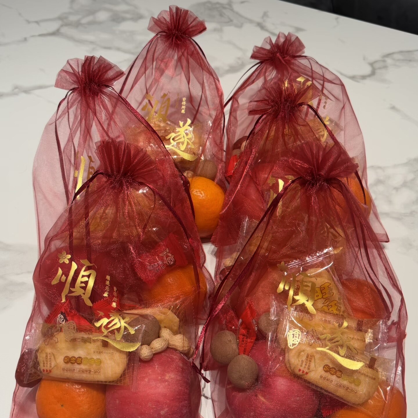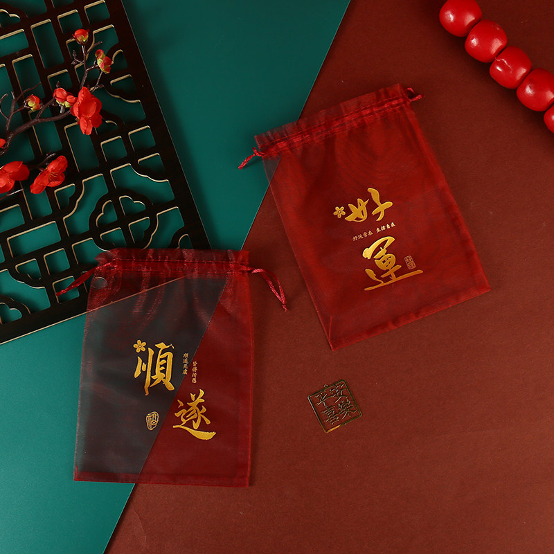 📚 普陀山还愿祈福袋供品袋礼佛拜拜袋酒红色网纱袋供果包装袋空袋子