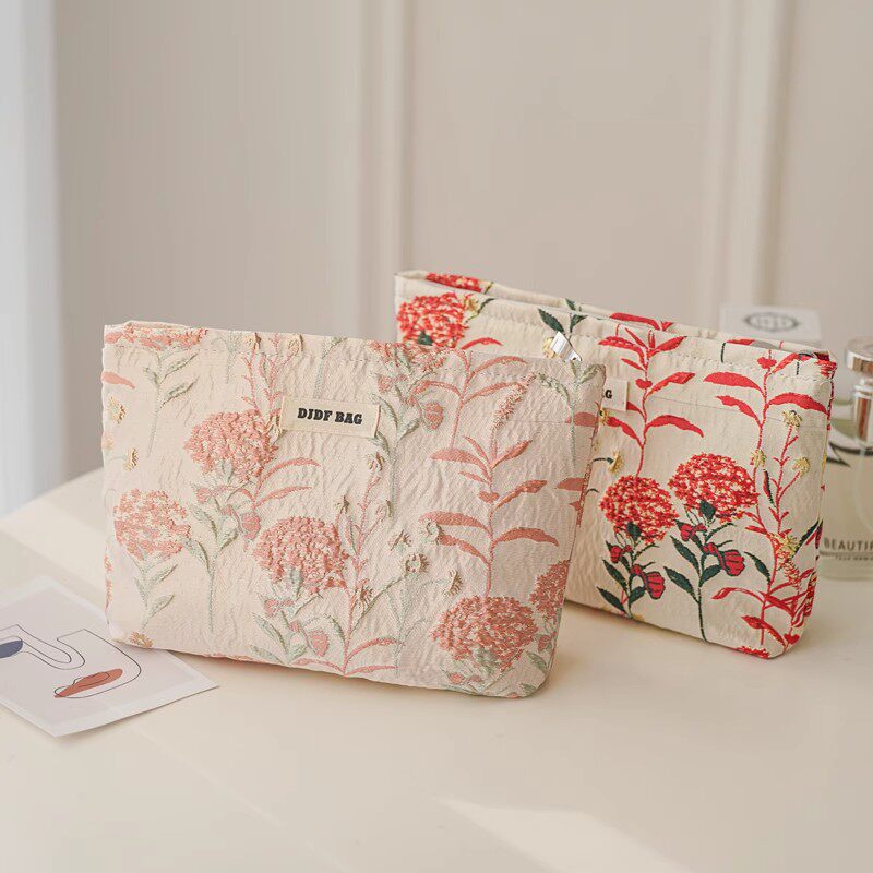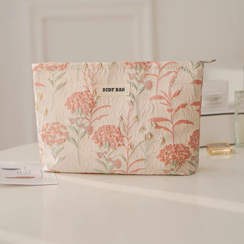 📚 ins奶油刺绣花朵高级感化妆包大容量水乳收纳袋女化妆便携手拿包