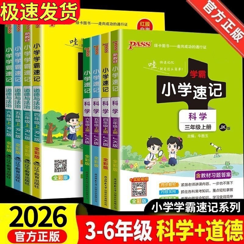 📚 2026春小学速记学霸科学道德与法治三四五六下册上册知识点汇总教科人教版前PASS绿卡图书教科版课本苏教版正版同步青岛版大象版