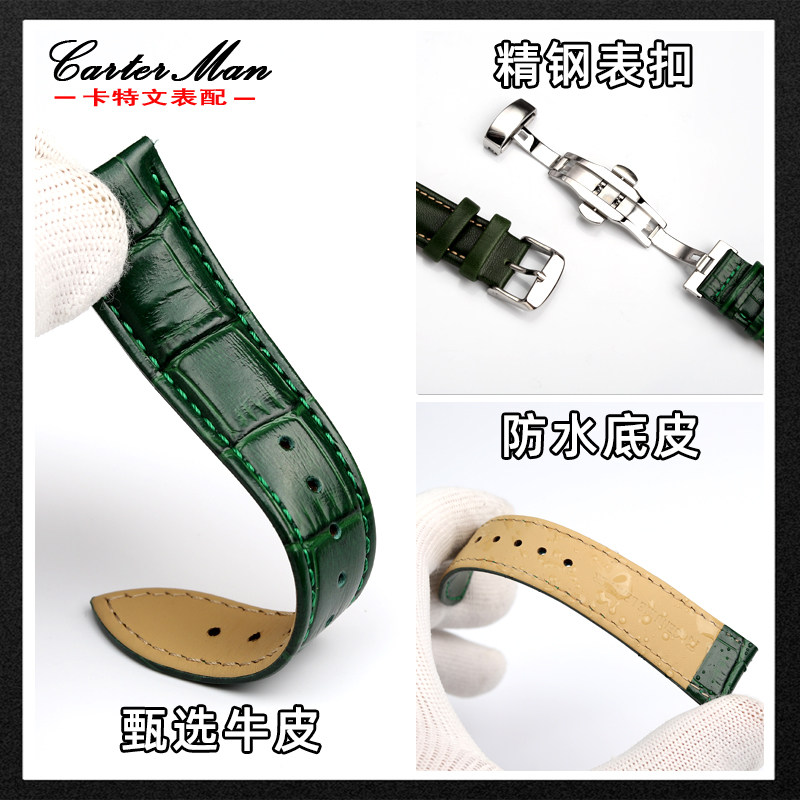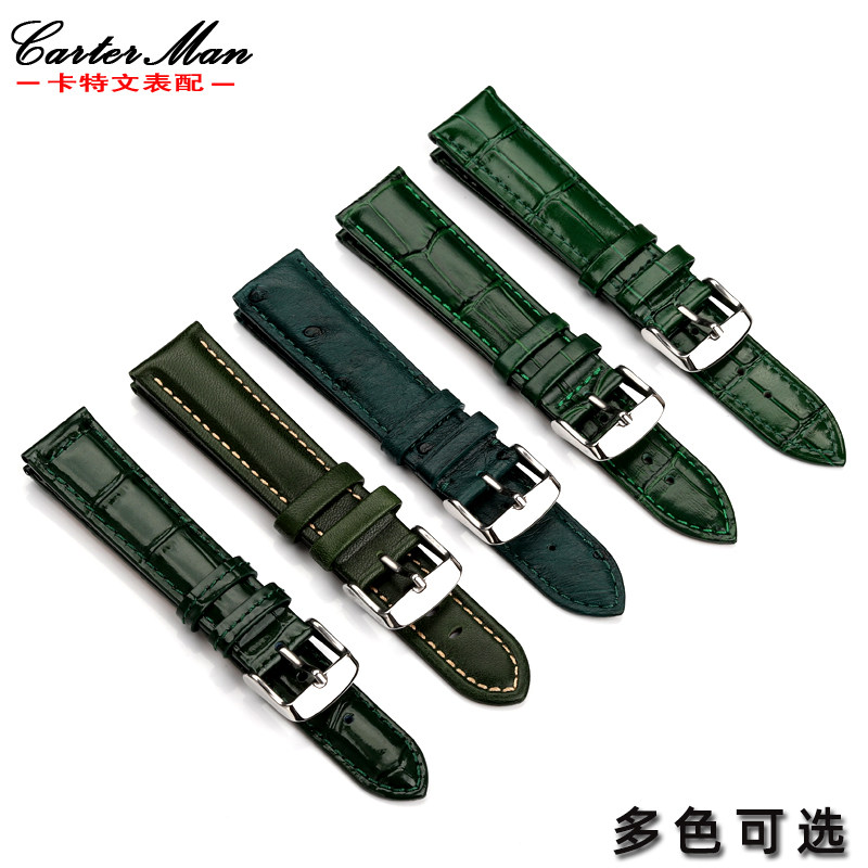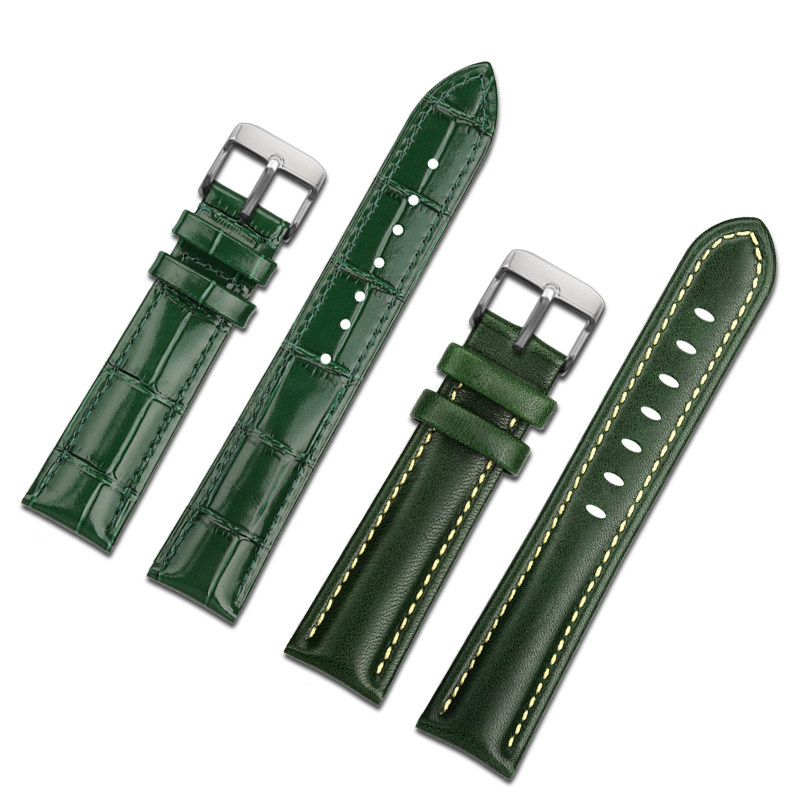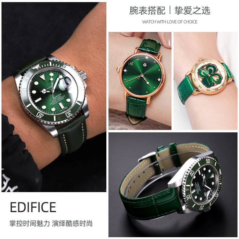 📚 绿色手表带真皮男女款 适配飞亚达四叶草/劳力士黑水鬼手表带20mm