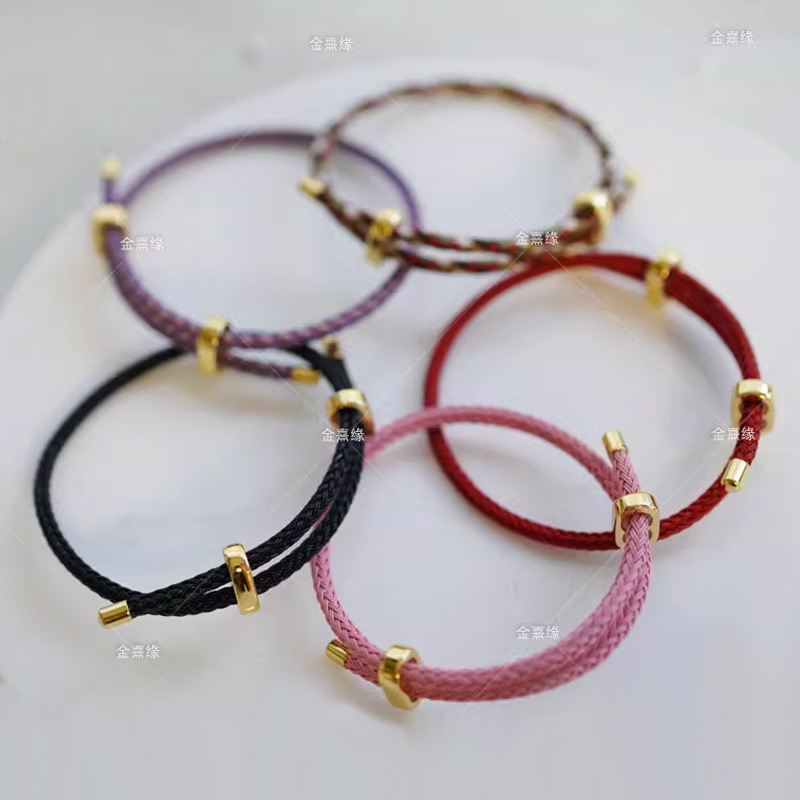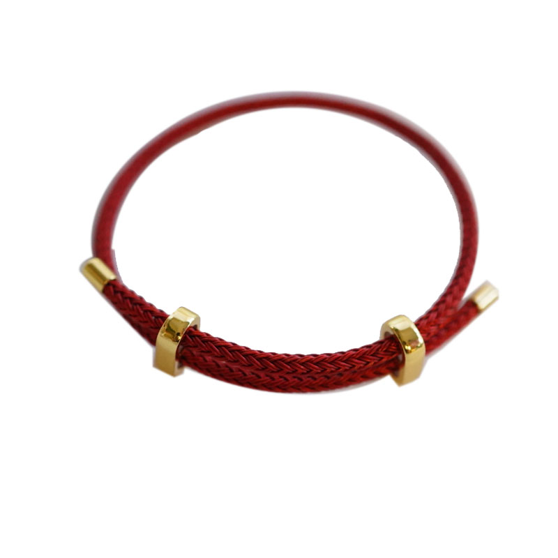 📚 可调节钢丝绳手链可串穿3D硬金本命年红绳男女编织串珠转运珠手绳